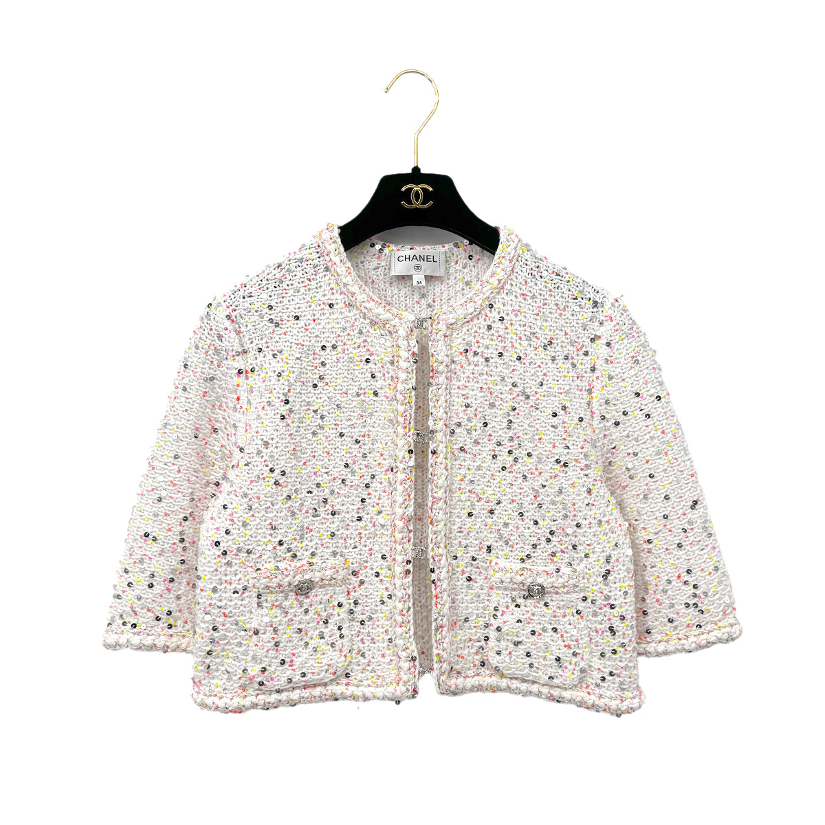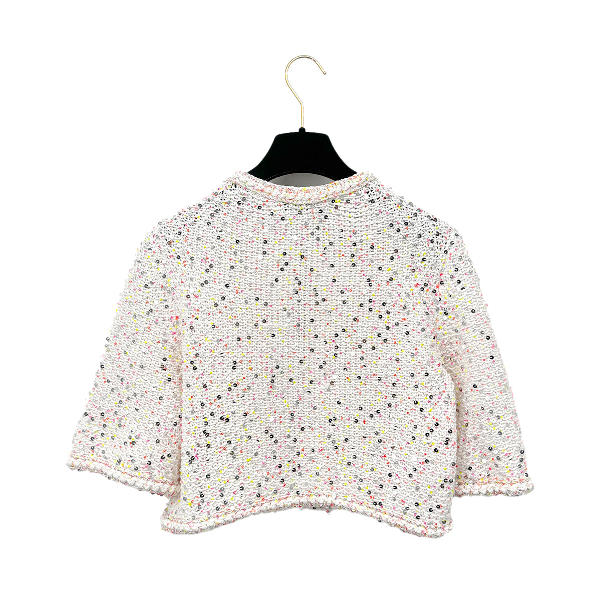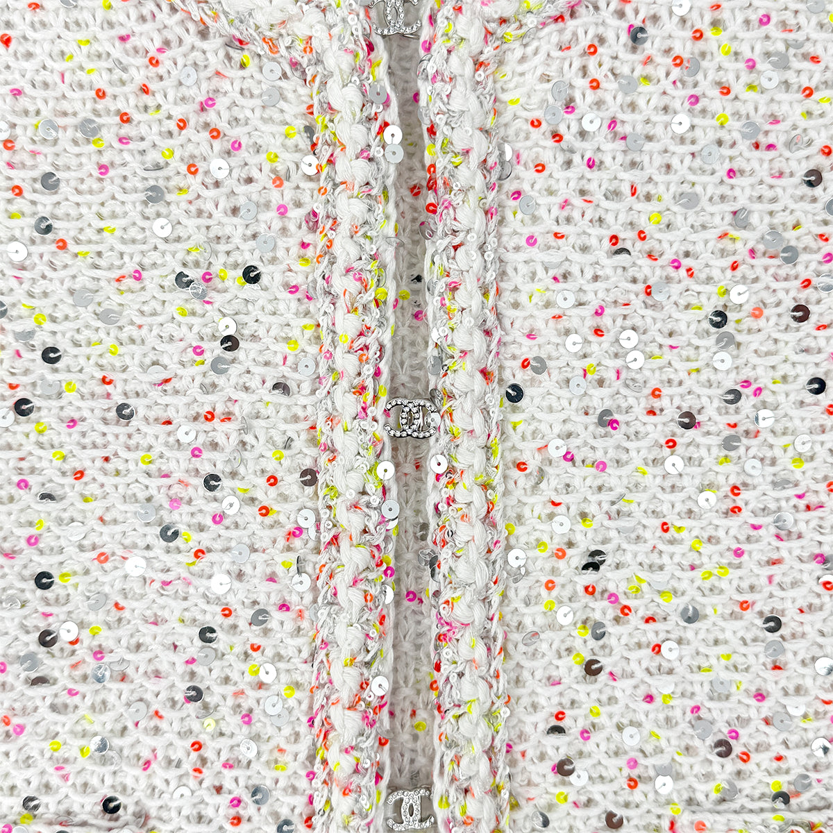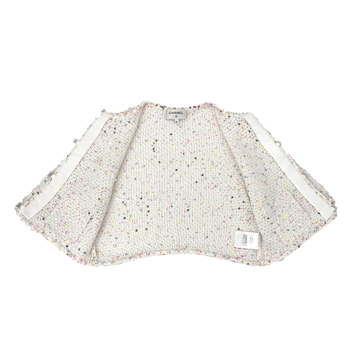 CHANEL GLITTER JACKET COCOMARK RHINESTONE SEQUINS WHITE COTTON 34 P76 RTW 90284024