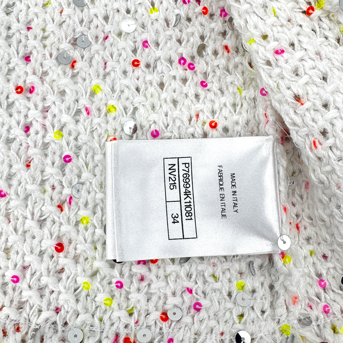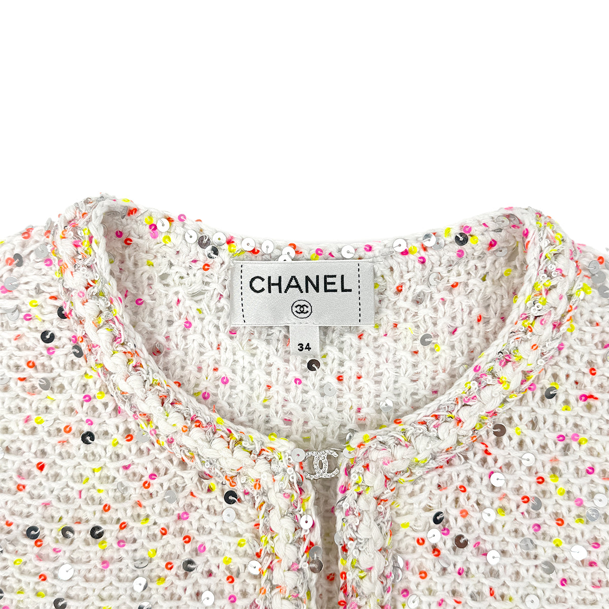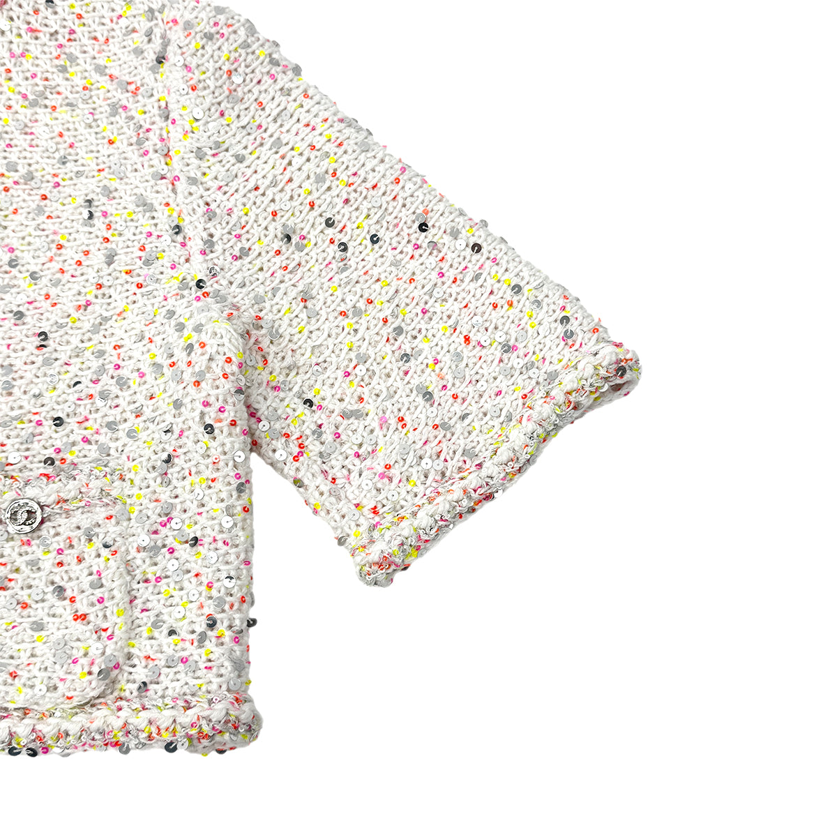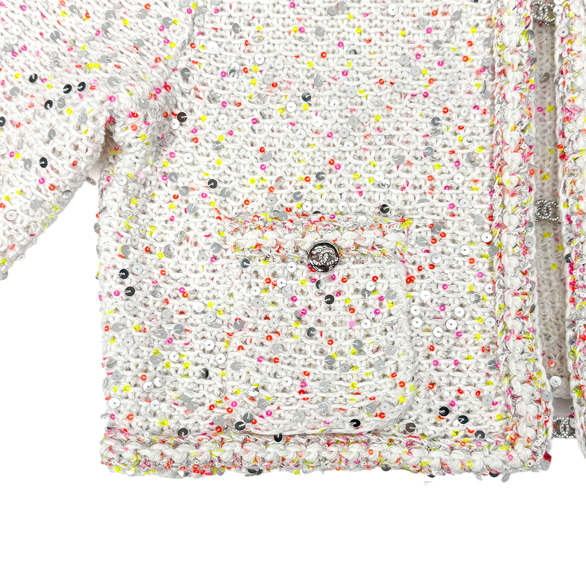 CHANEL GLITTER JACKET COCOMARK RHINESTONE SEQUINS WHITE COTTON 34 P76 RTW 90284024