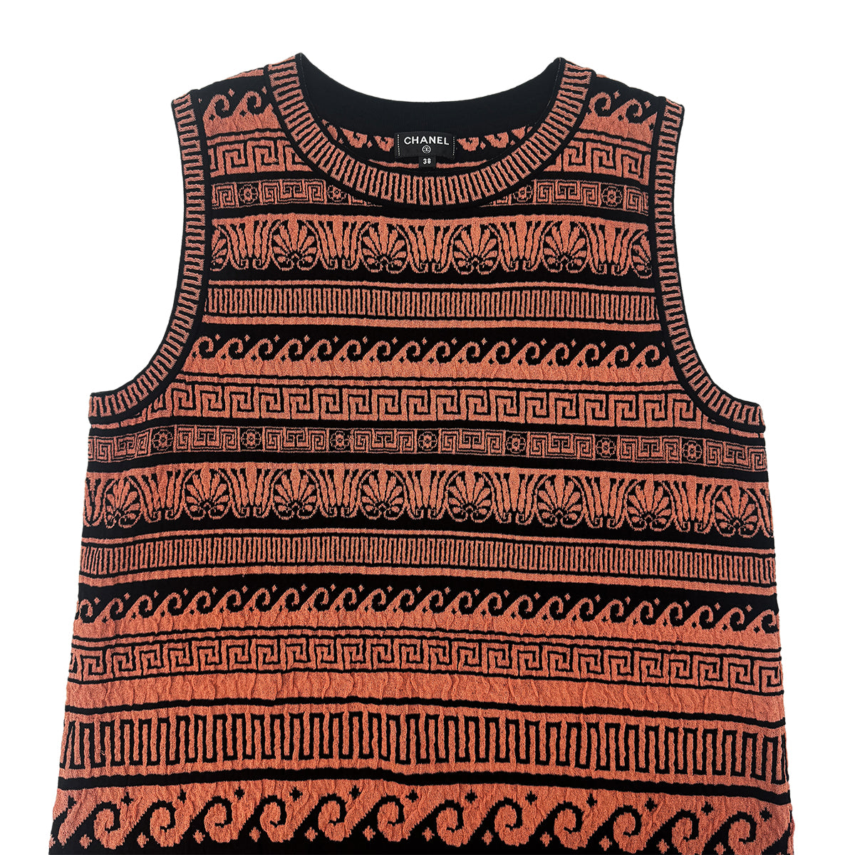 CHANEL GREECE BURNT SLEEVELESS DRESS ORANGE BLACK PAPER 38 P58 RTW 90284008