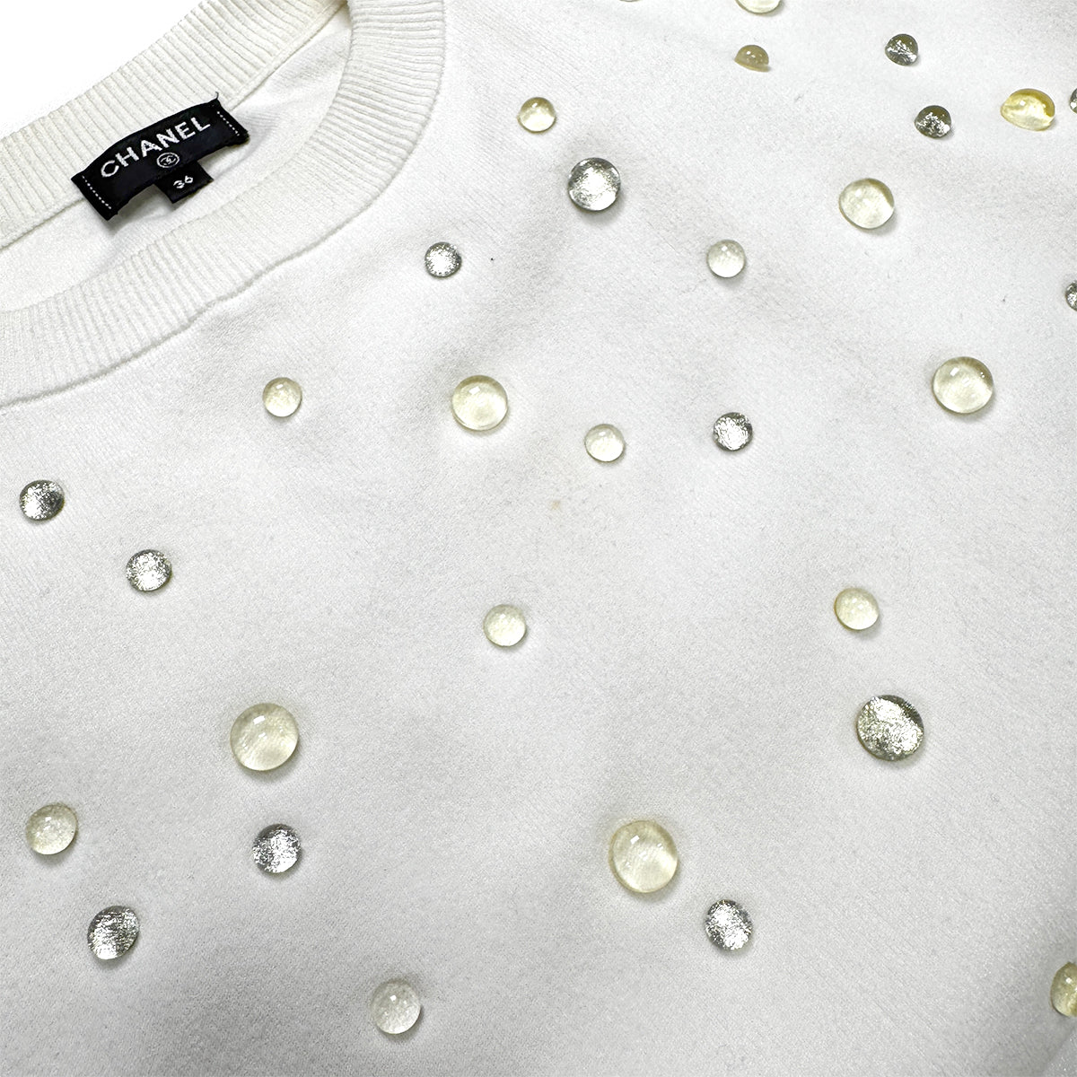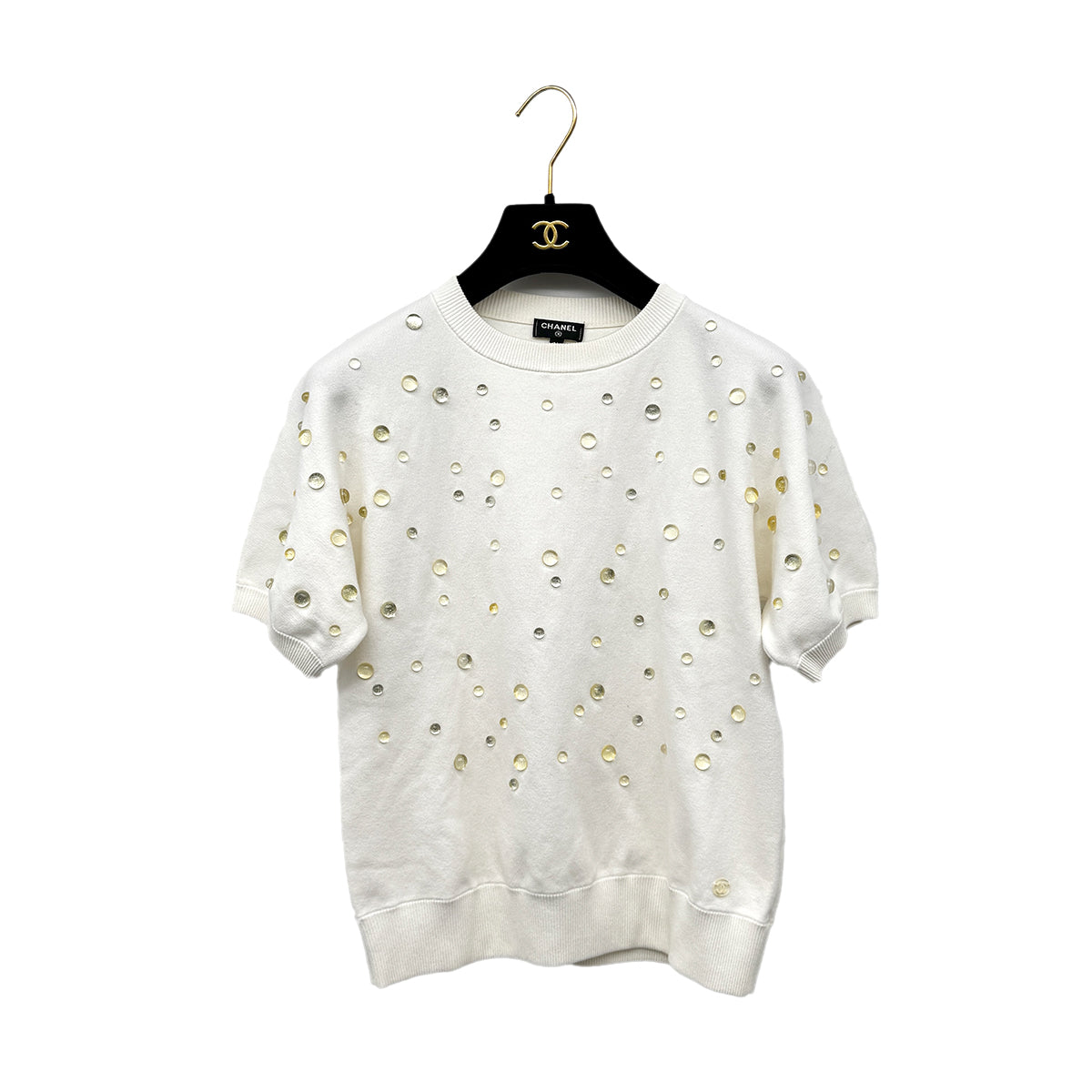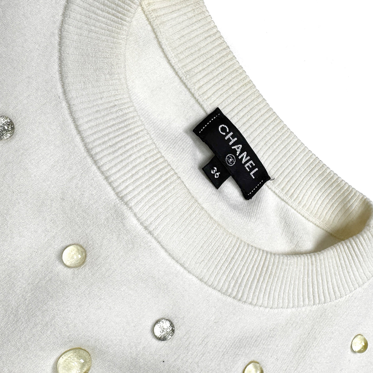 CHANEL KNIT TOPS BEEDS WHITE COTTON 36 P58 RTW 90284438