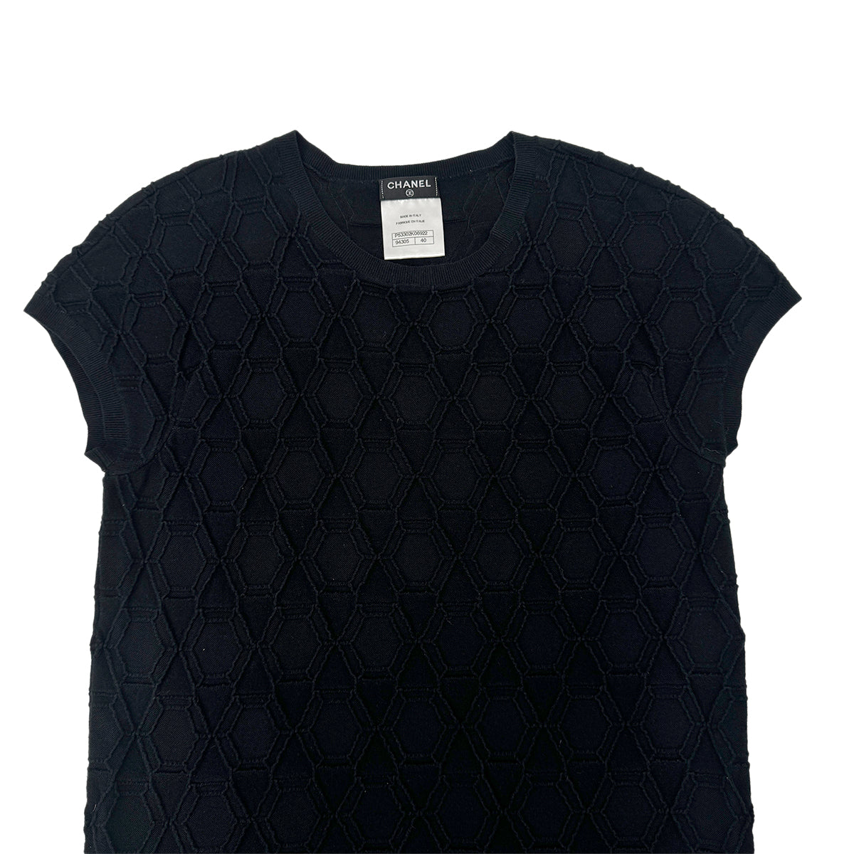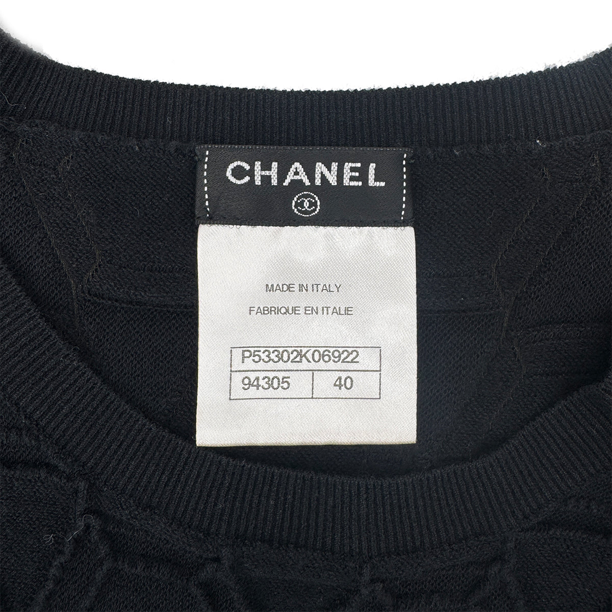 CHANEL KNIT TOPS SHORT SLEEVE BLACK COTTON 40 P53 RTW 90283635