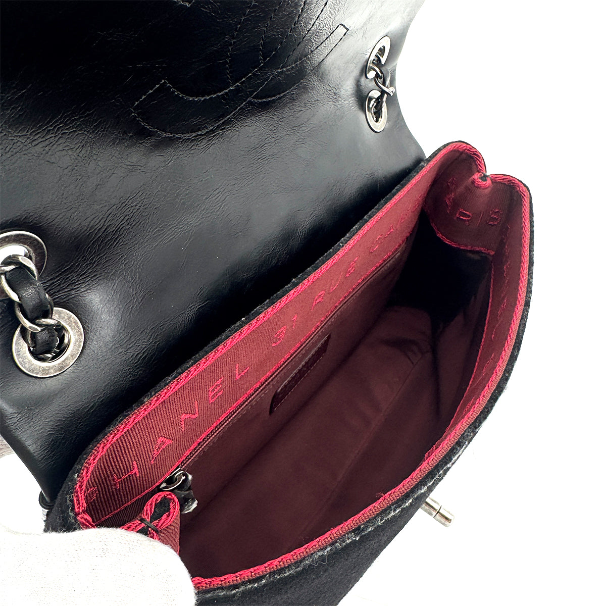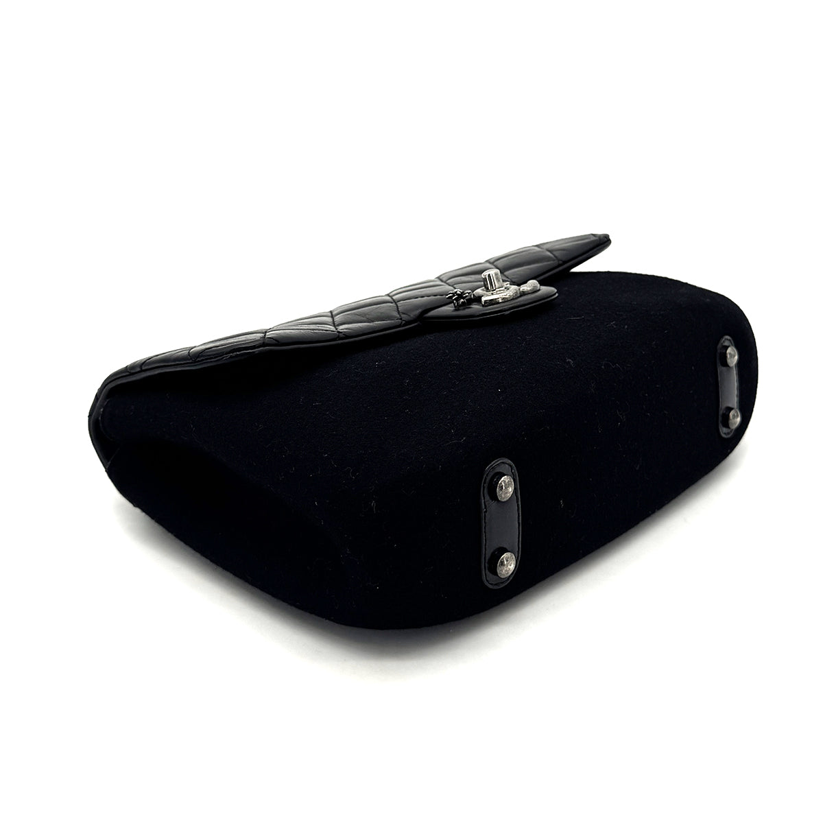 CHANEL MATELASSE CAMELLIA CHAIN SHOULDER BAG BLACK LAMBSKIN FELT 90275134