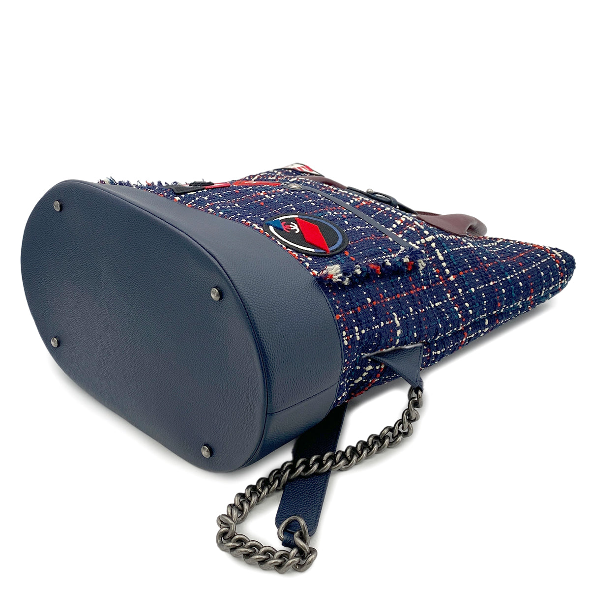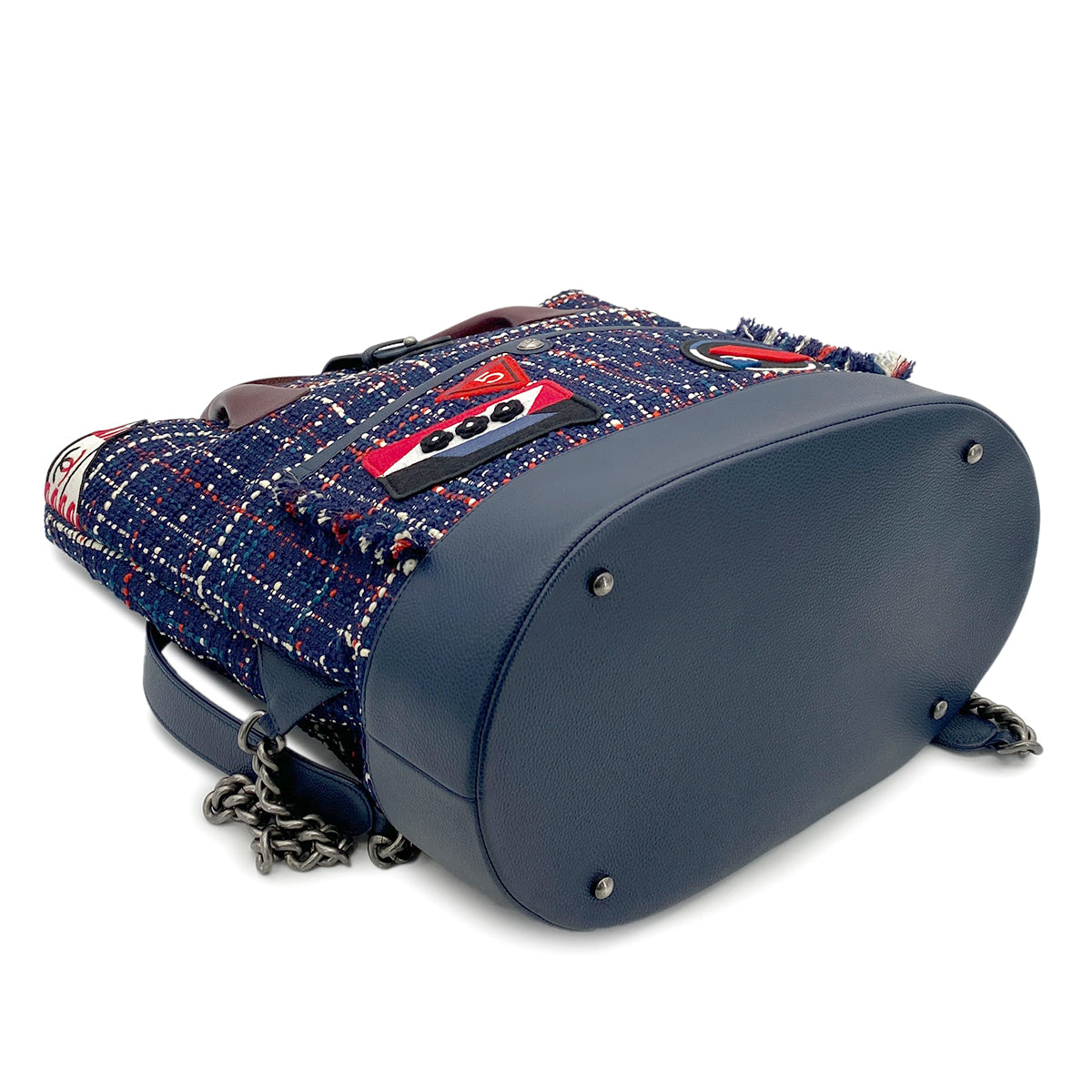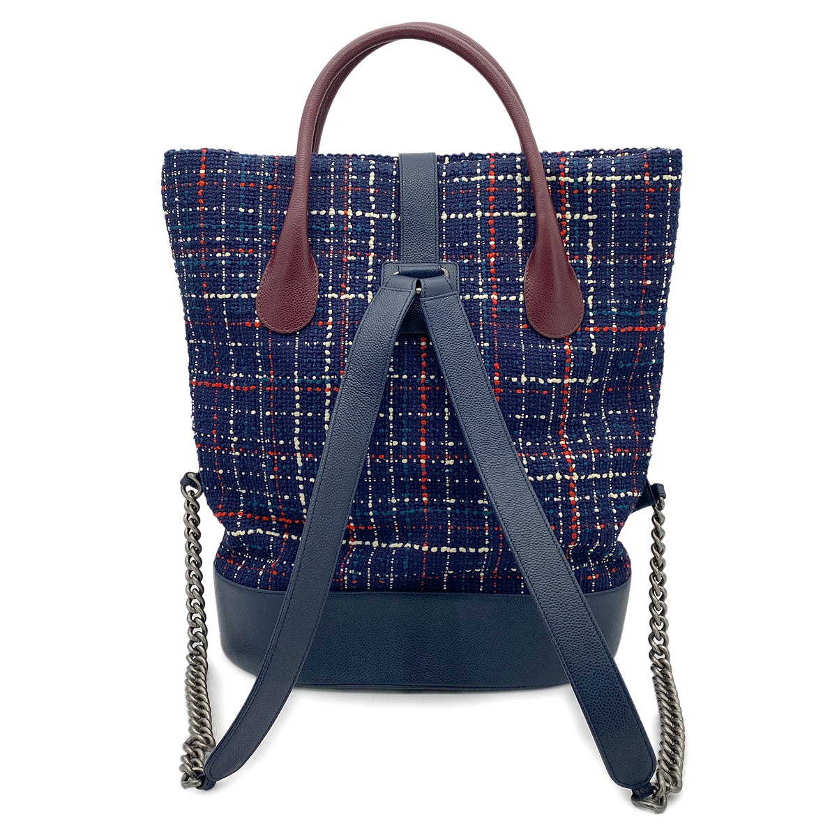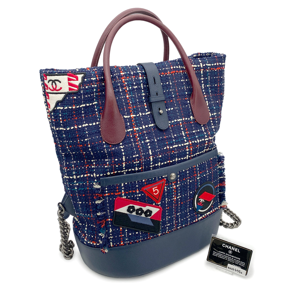 CHANEL AIRLINE CHAIN TOTE BACKPACK NAVY RED TWEED LEATHER 90264750