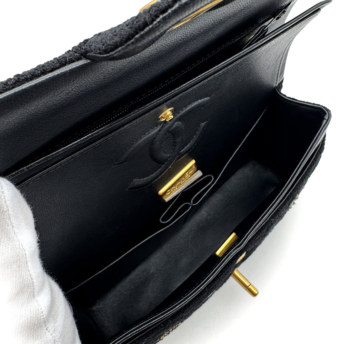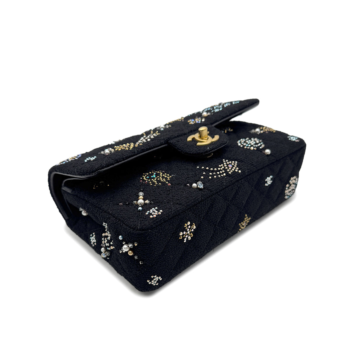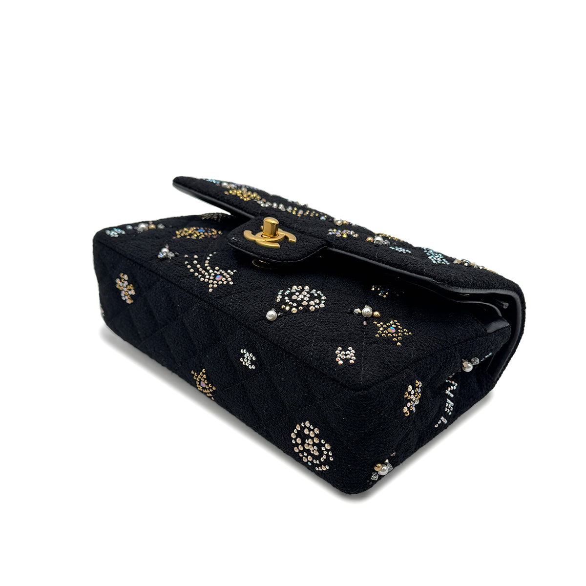 CHANEL MATELASSE CHAIN SHOULDER BAG BLACK TWEED BEADS RHINESTONE 90302336
