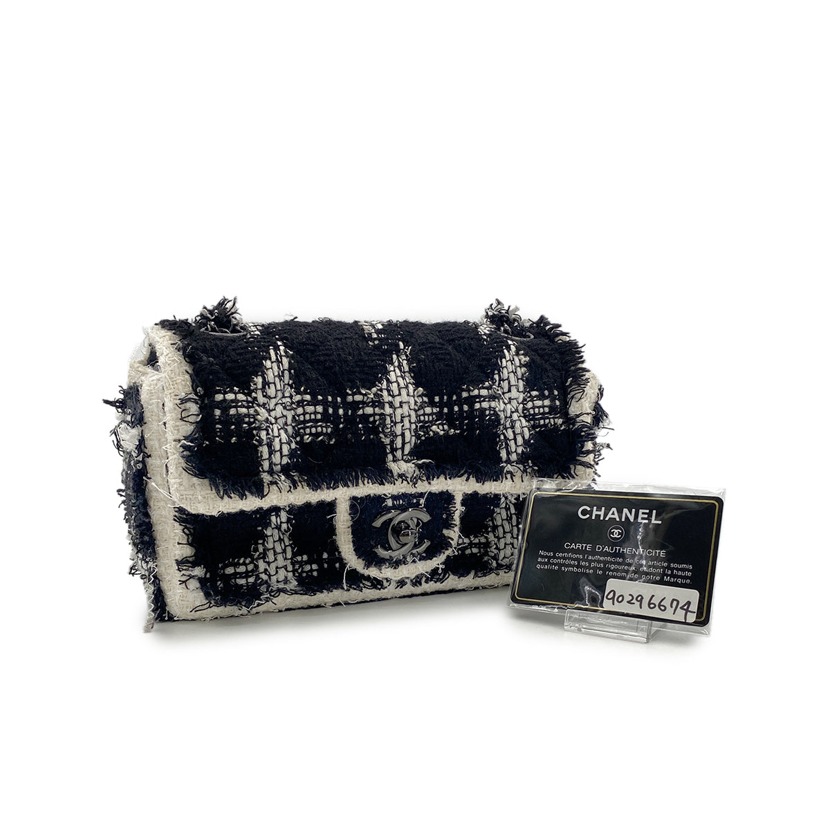 CHANEL MINI MATELASSE 20 CHAIN SHOULDER BAG BLACK WHITE TWEED 90296674