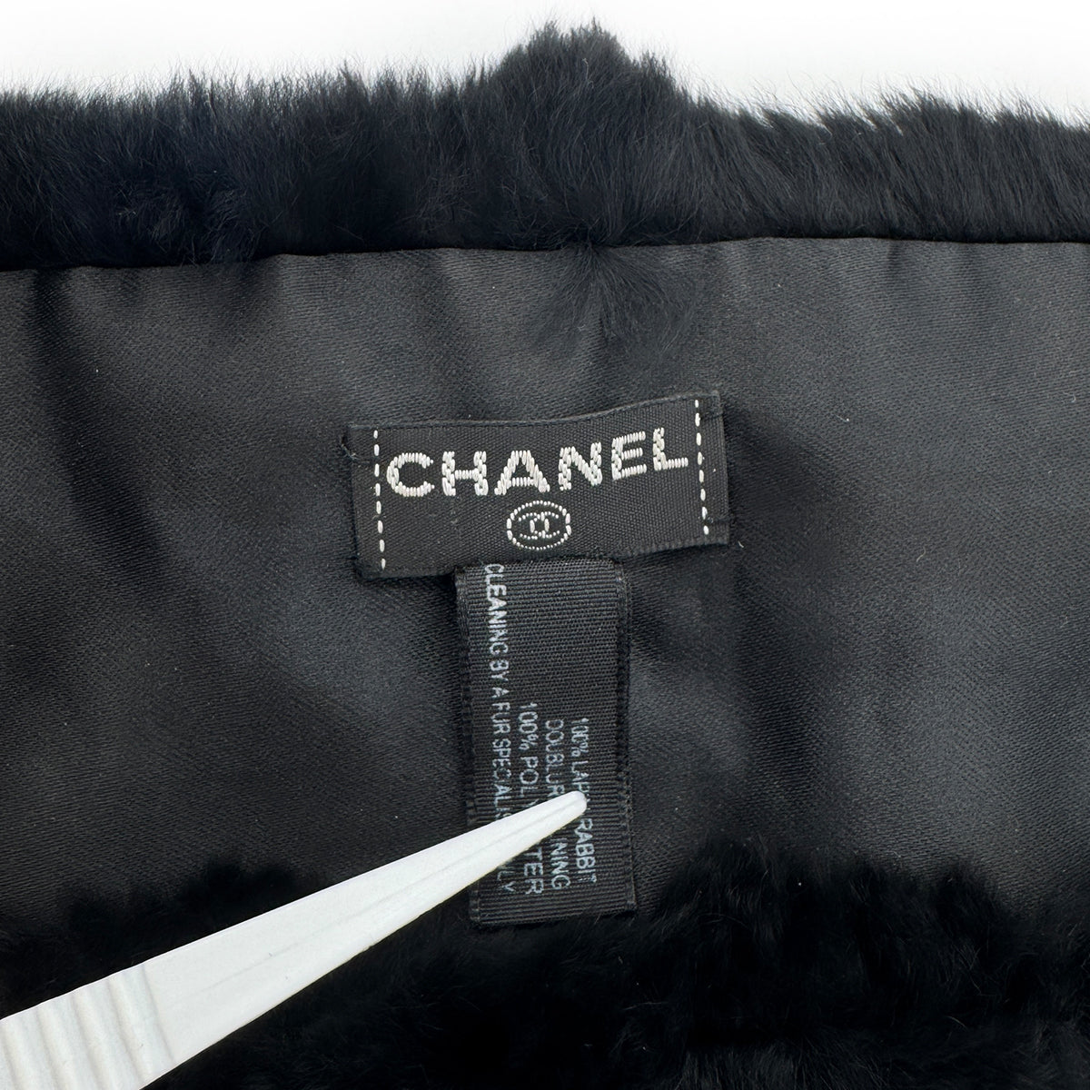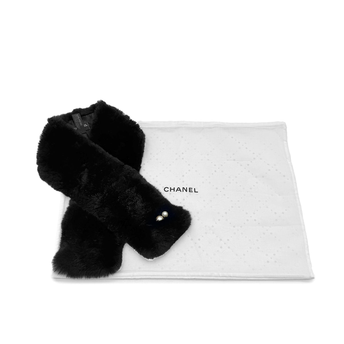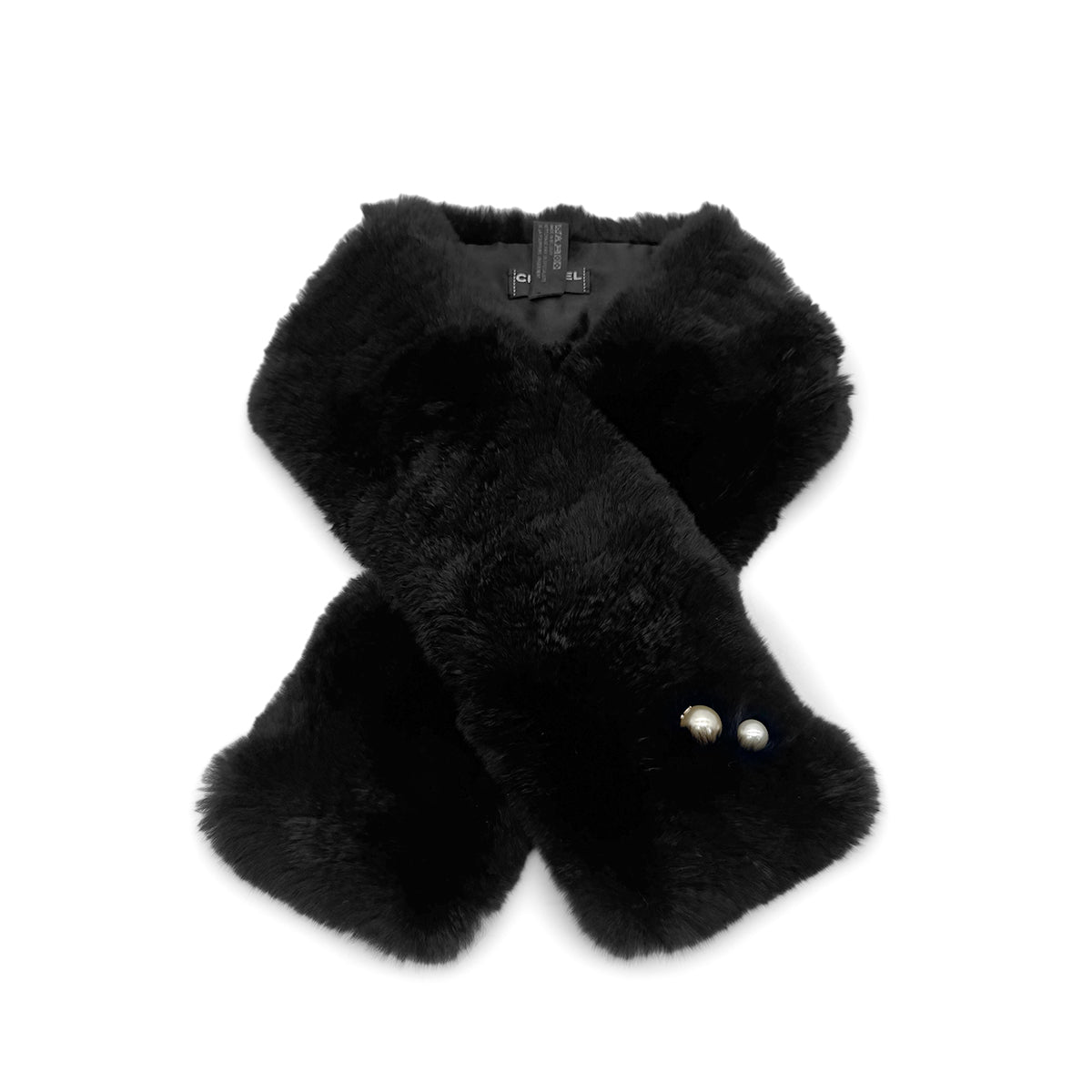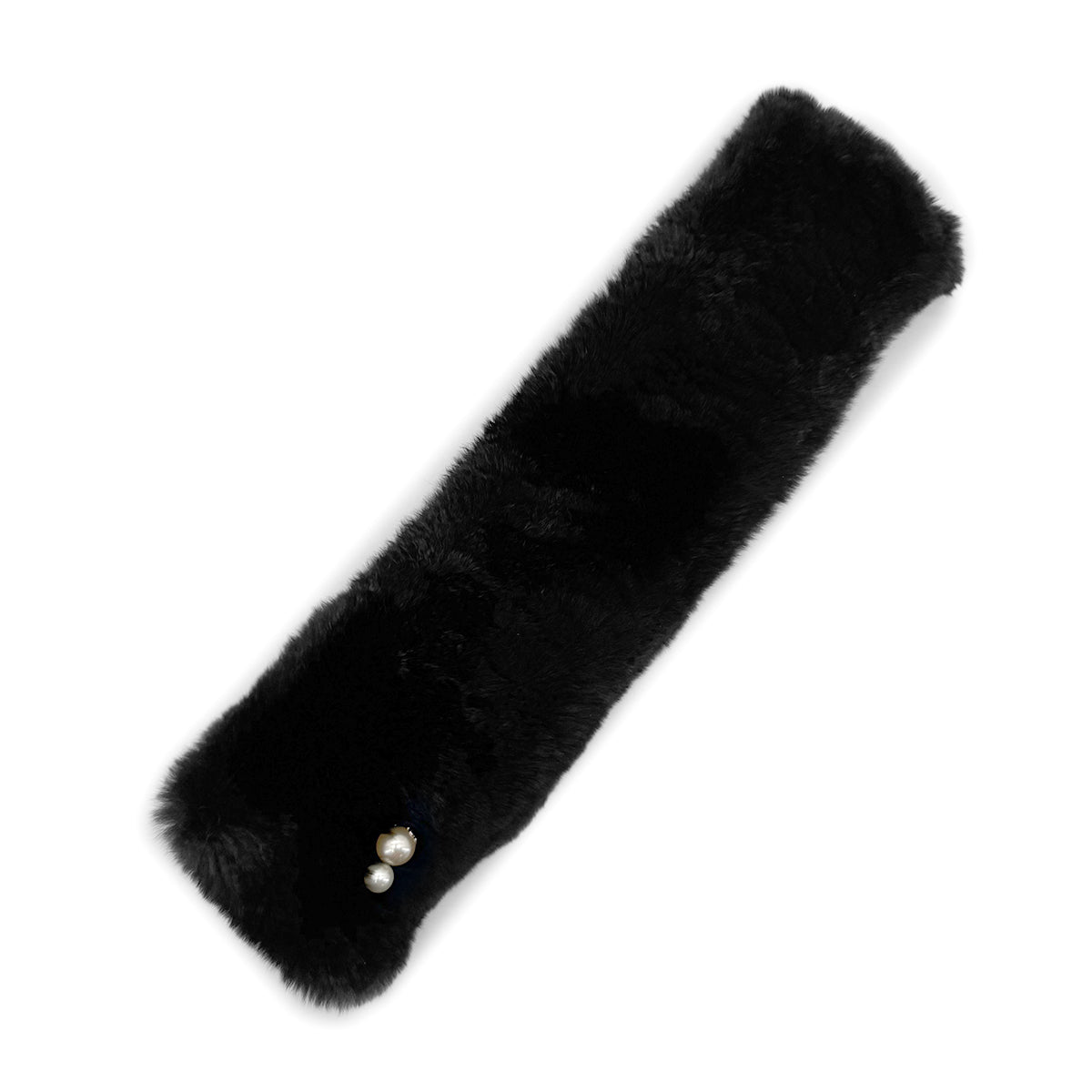 CHANEL MUFFLER COCOMARK FAUX PEARL BLACK RABBIT FUR 90282081