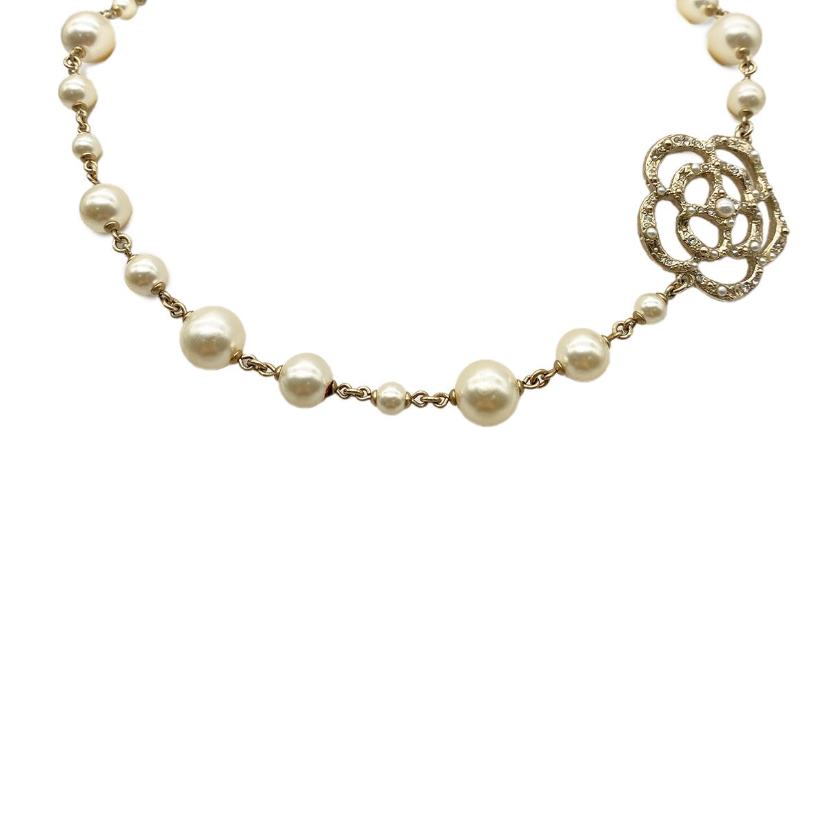 CHANEL NECKLACE CAMELLIA FAUX PEARL RHINESTONE COCOMARK ACCESSORY A13P 90274862
