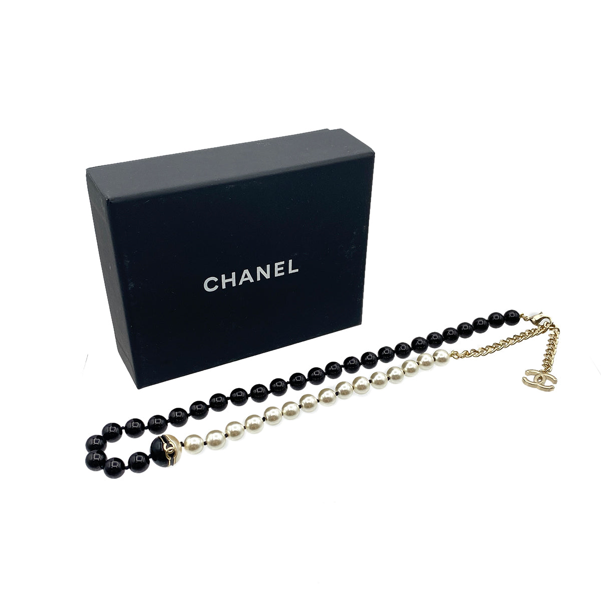 CHANEL NECKLACE COCOMARK FAUX PEARL WHITE BLACK ACCESSORY B24C 90272310