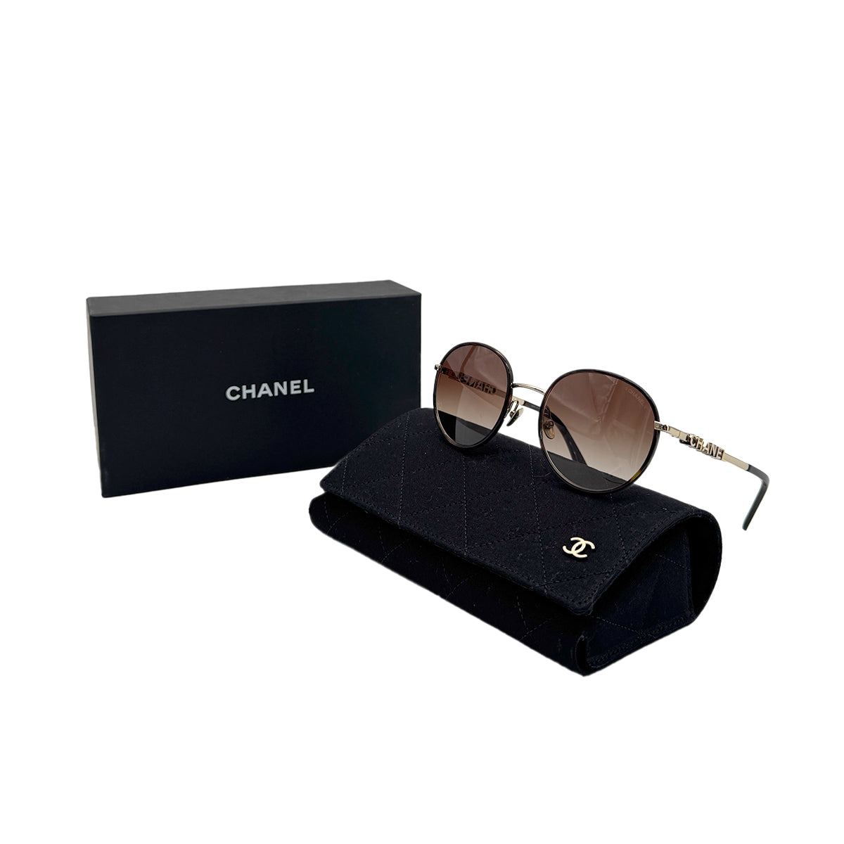 CHANEL SUNGLASSES LOGO BROWN GOLD EYEWEAR 90281856