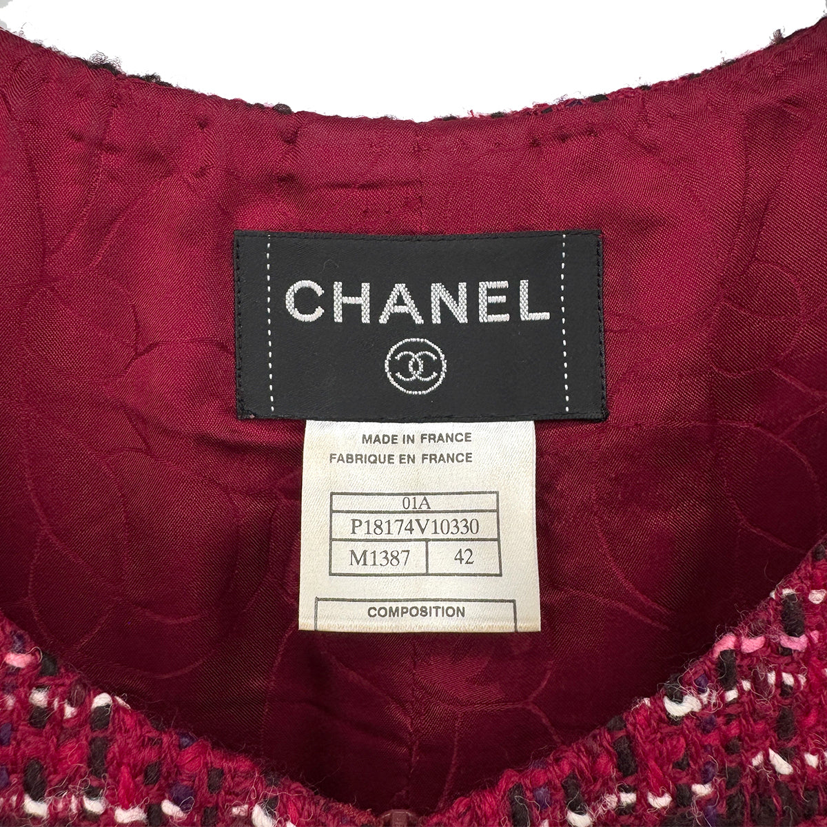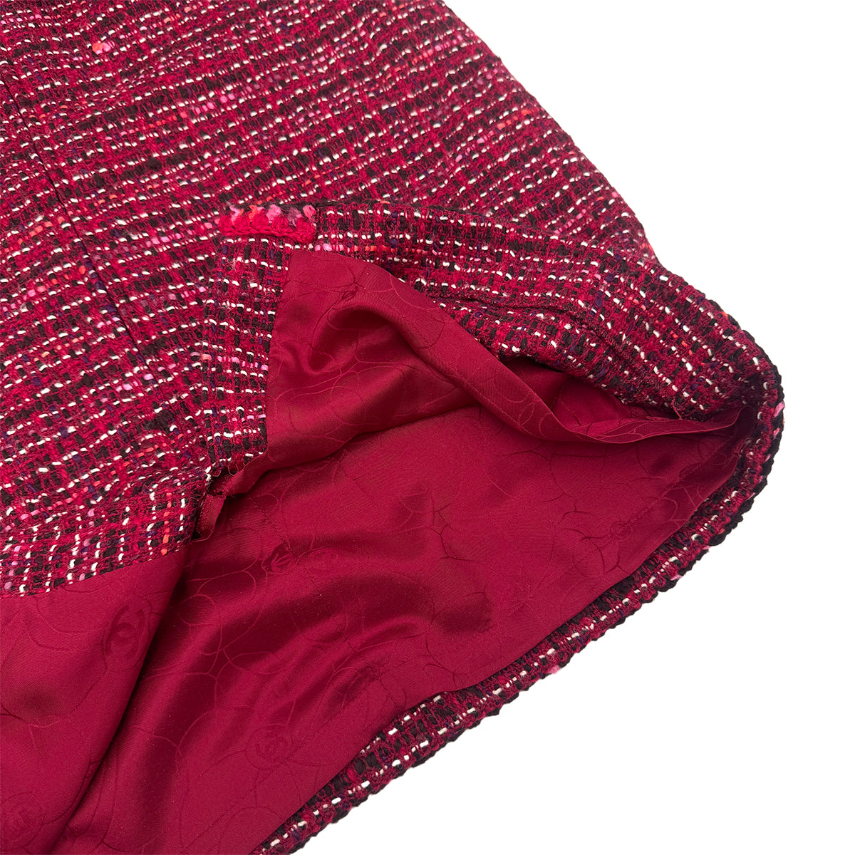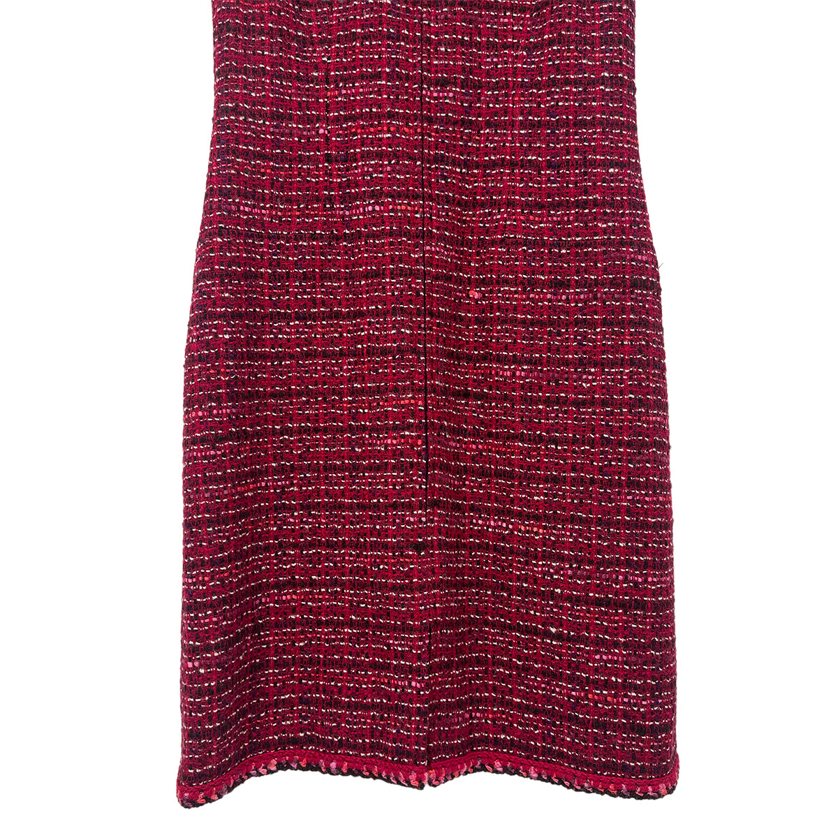 CHANEL TWEED COCO BUTTON SLEEVELESS ZIP DRESS RED WOOL 42 01A RTW 90283150