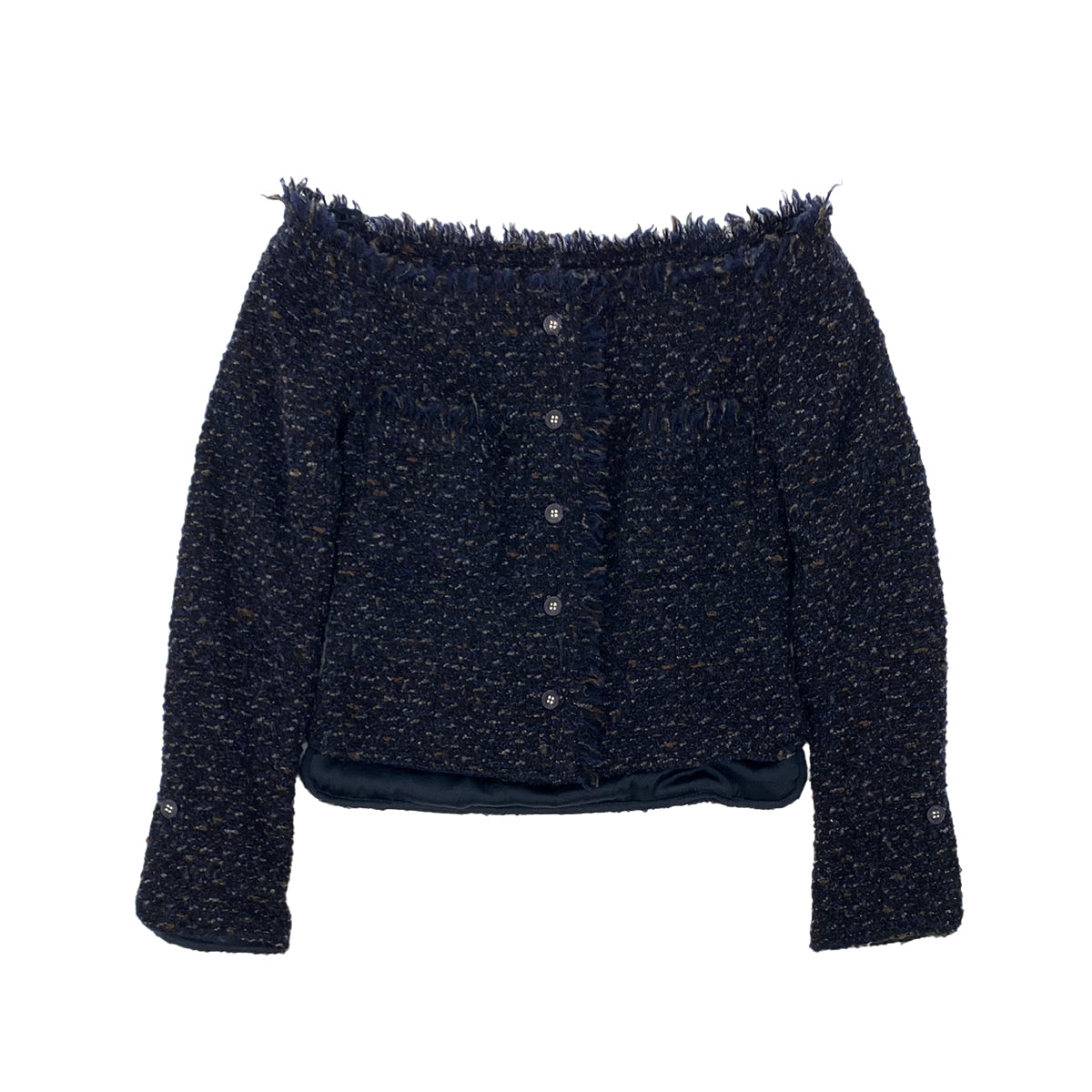 CHANEL TWEED JACKET NAVY WOOL 36 02A RTW 90284029