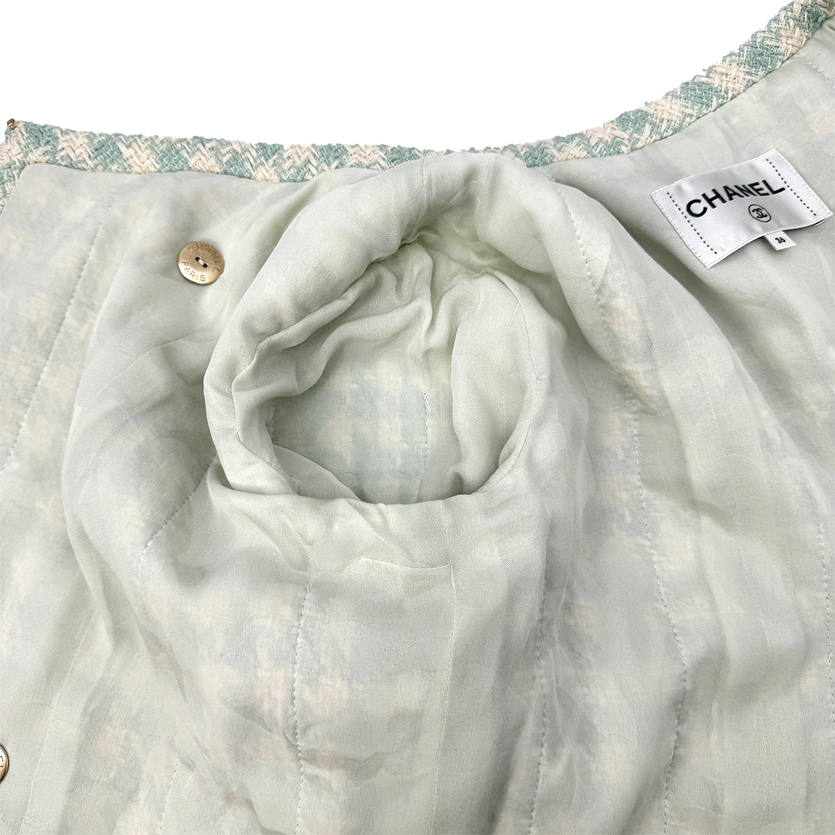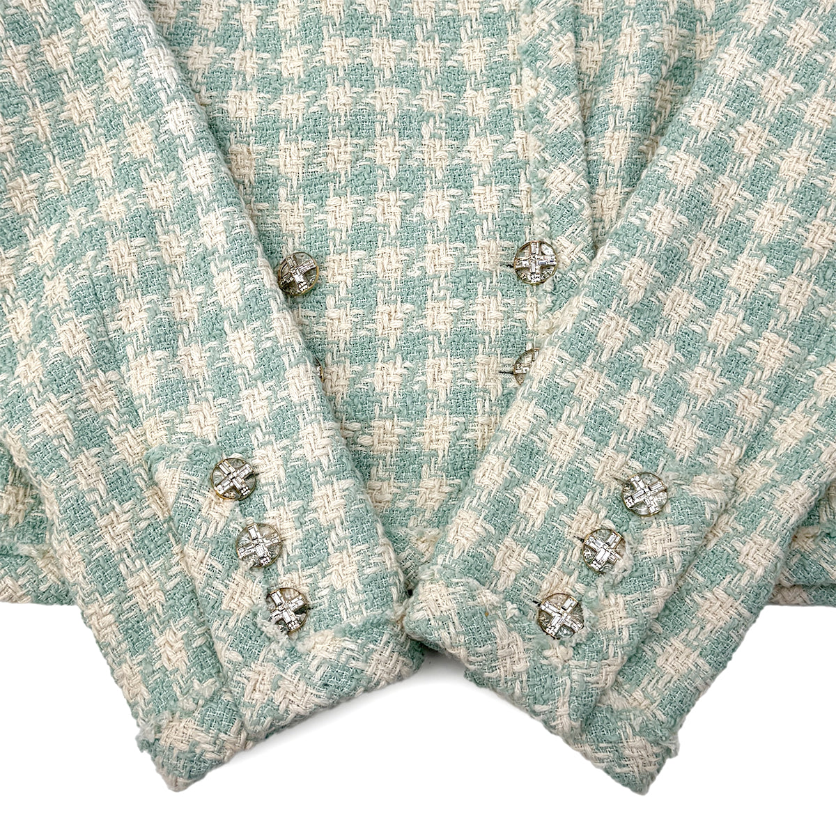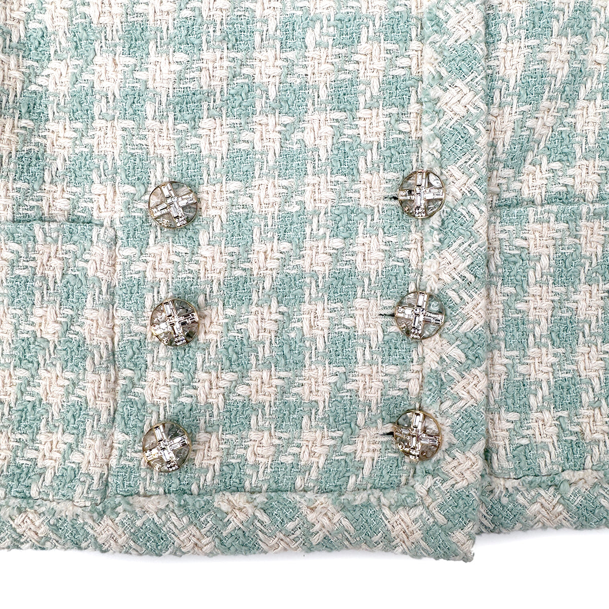 CHANEL TWEED JACKET RHINESTONE BUTTON LIGHT GREEN COTTON 36 P74 RTW 90284591