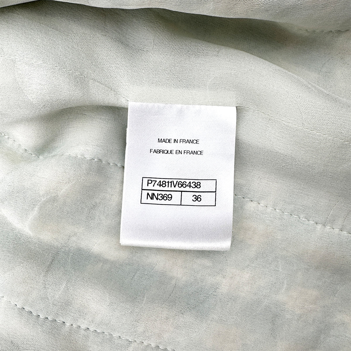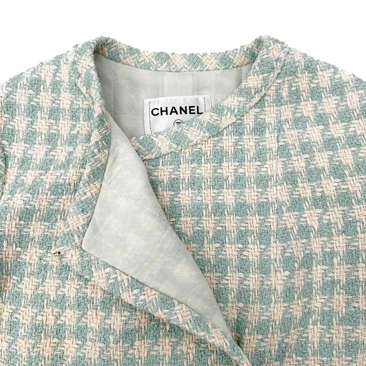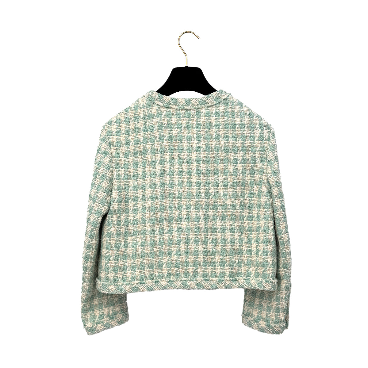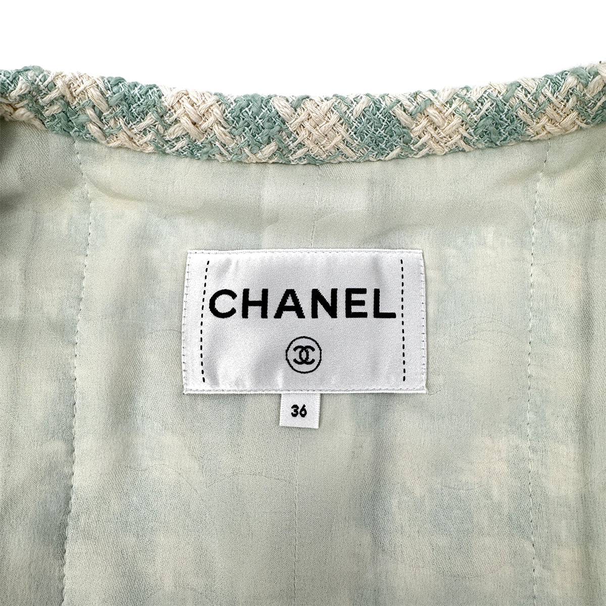 CHANEL TWEED JACKET RHINESTONE BUTTON LIGHT GREEN COTTON 36 P74 RTW 90284591