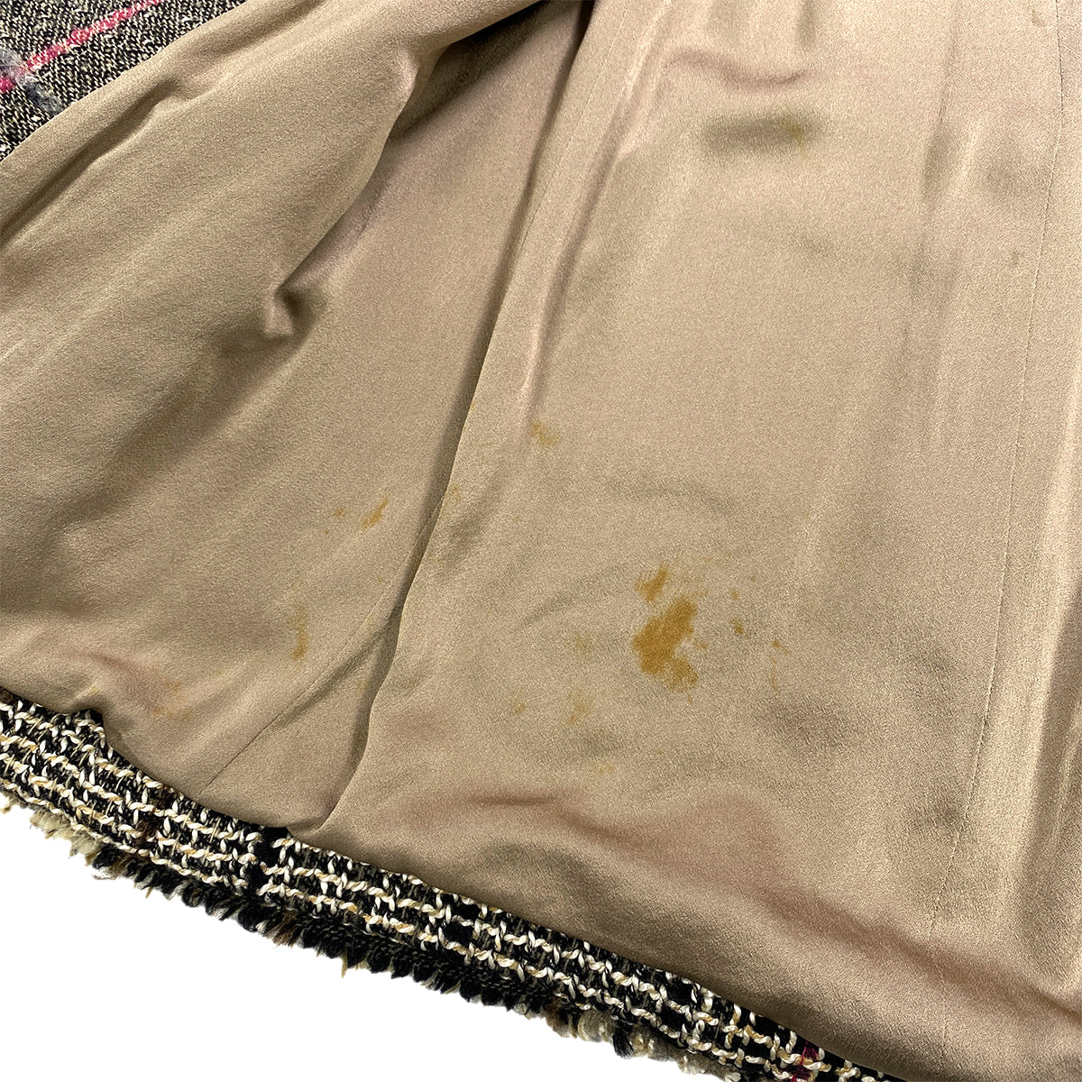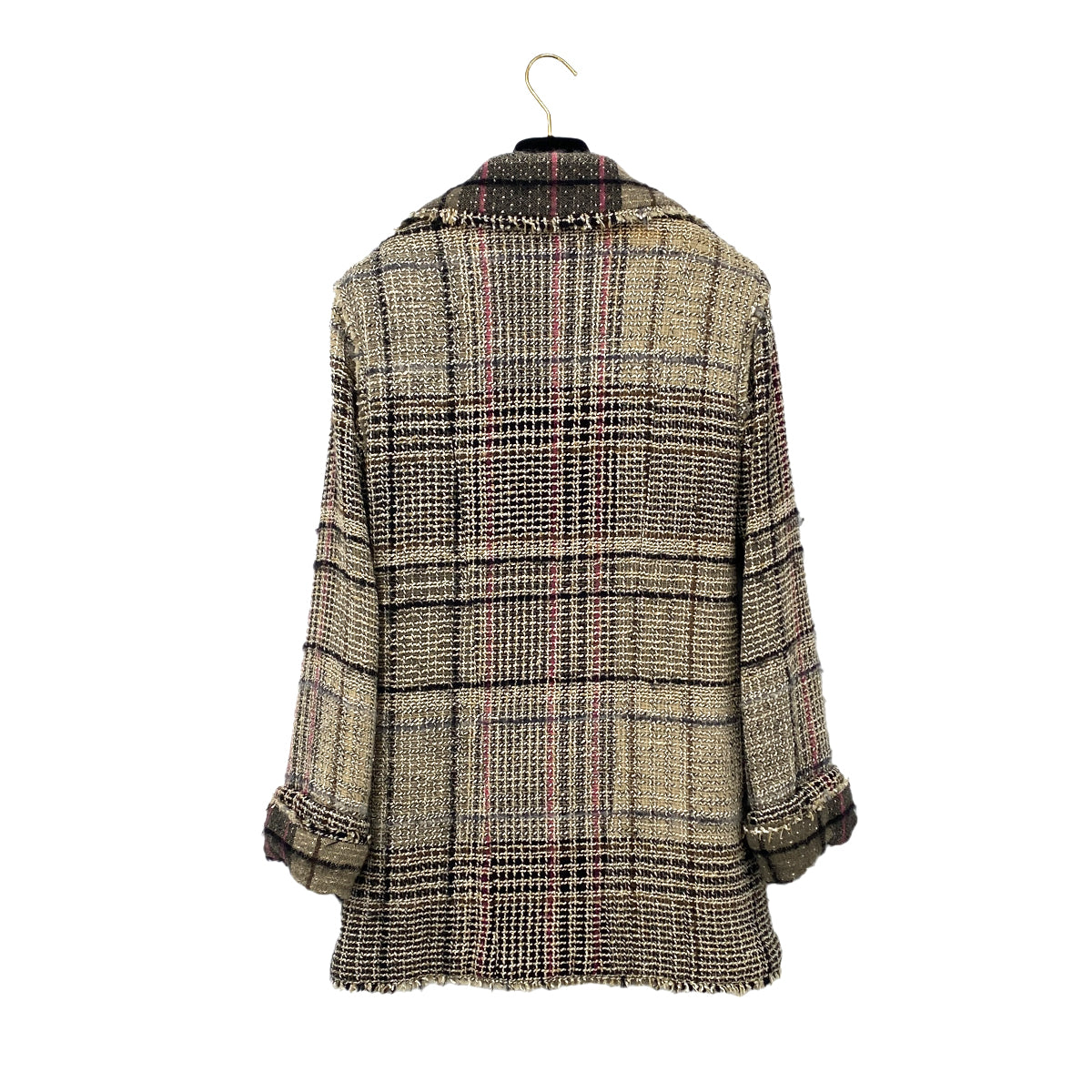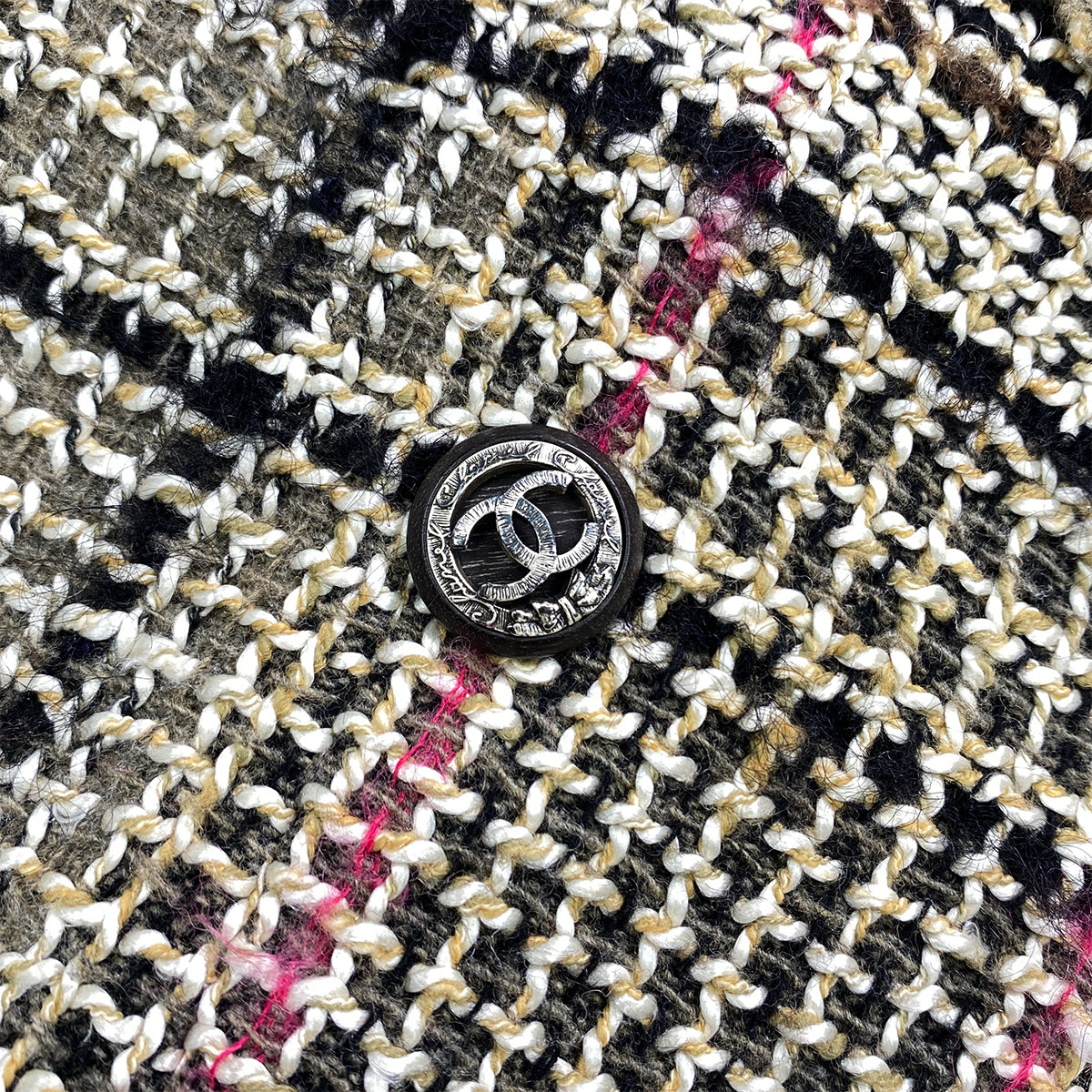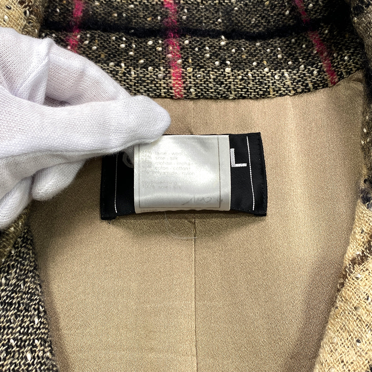 CHANEL TWEED PLAID COAT JACKET COCO BUTTON BEIGE WOOL 36 05A RTW 90283645