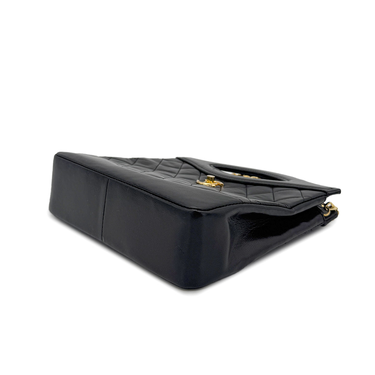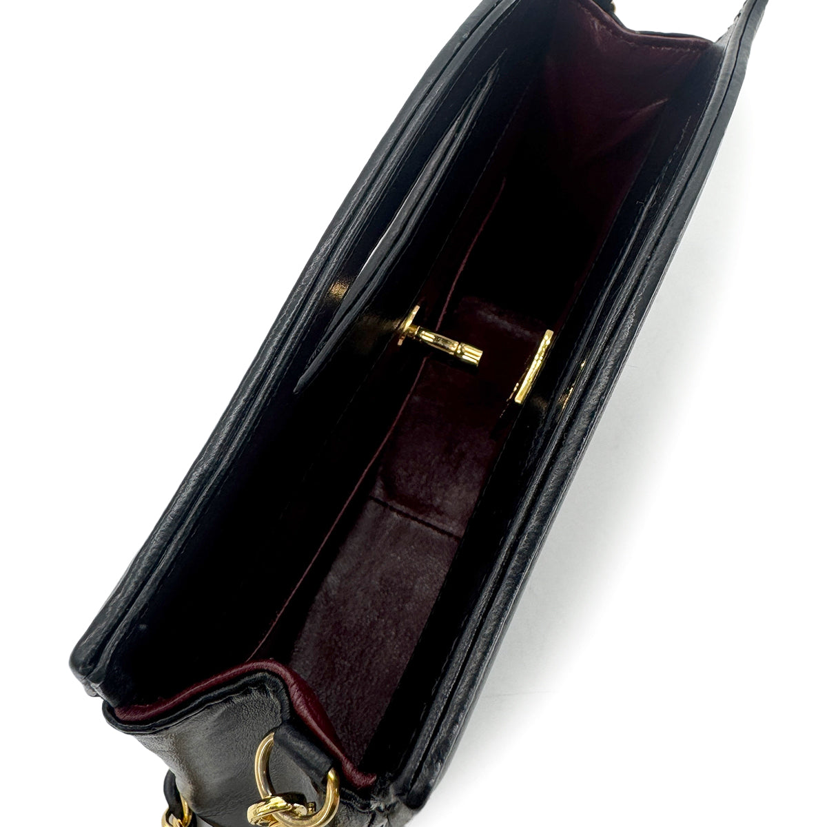 CHANEL VINTAGE 2WAY HAND CHAIN SHOULDER BAG BLACK LAMB SKIN 90265415