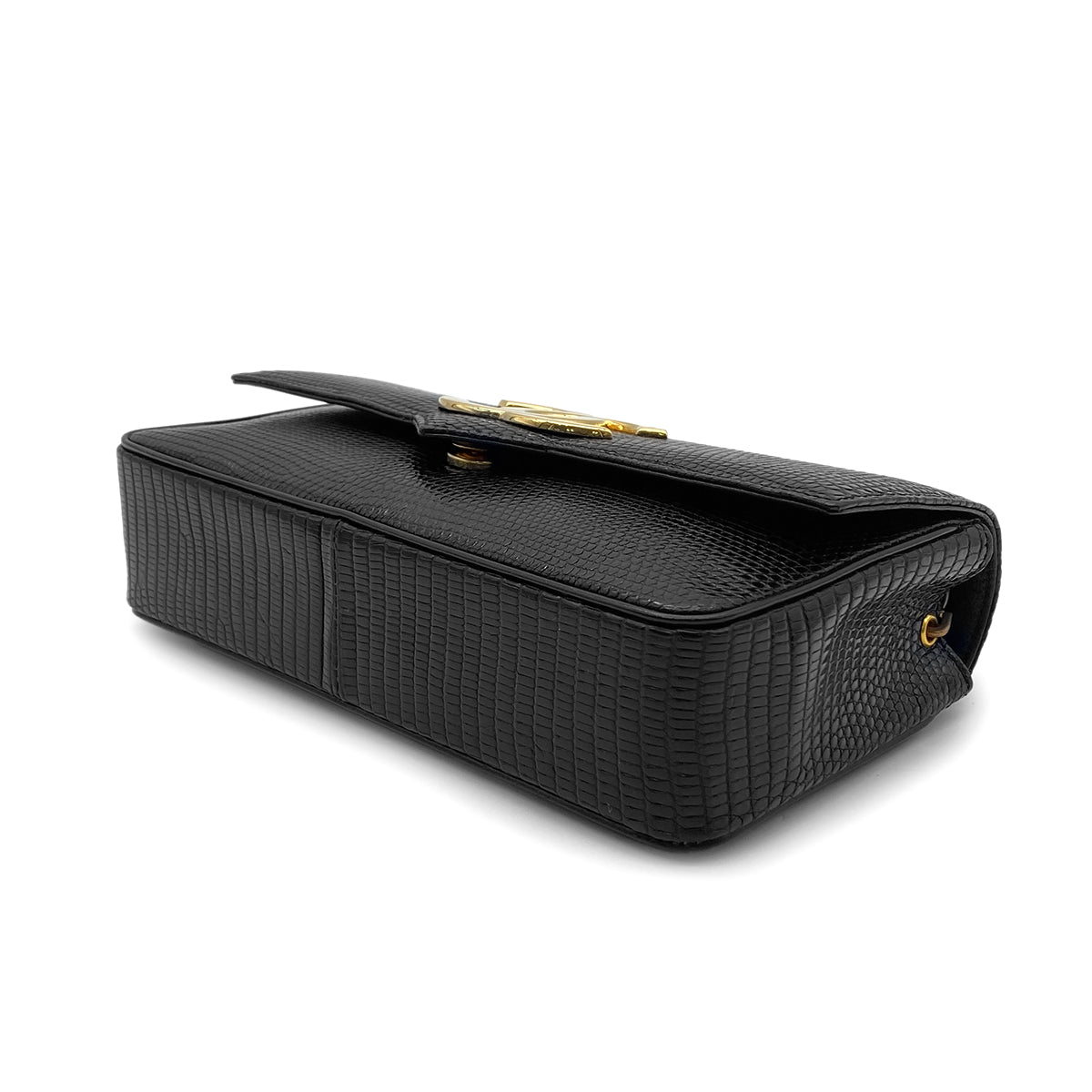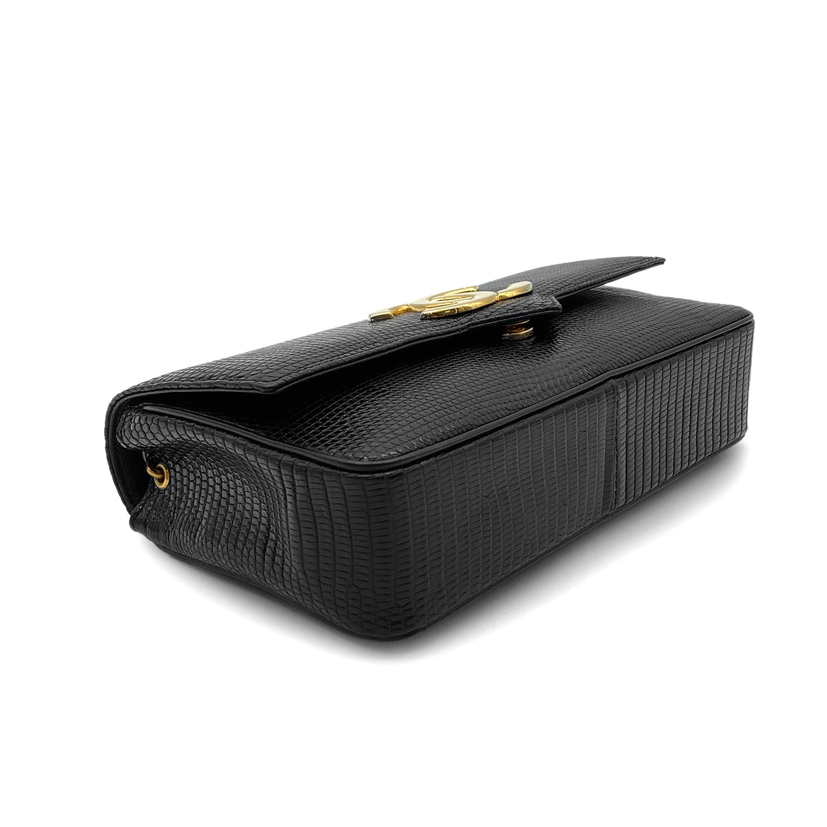 CHANEL VINTAGE BIG COCO CHAIN SHOULDER BAG BLACK LIZARD 90280696