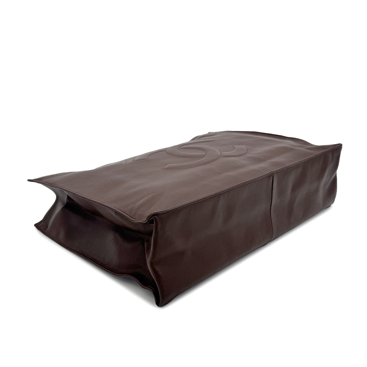 CHANEL VINTAGE BIG COCO CHAIN TOTE BAG BROWN LAMB SKIN 90271376