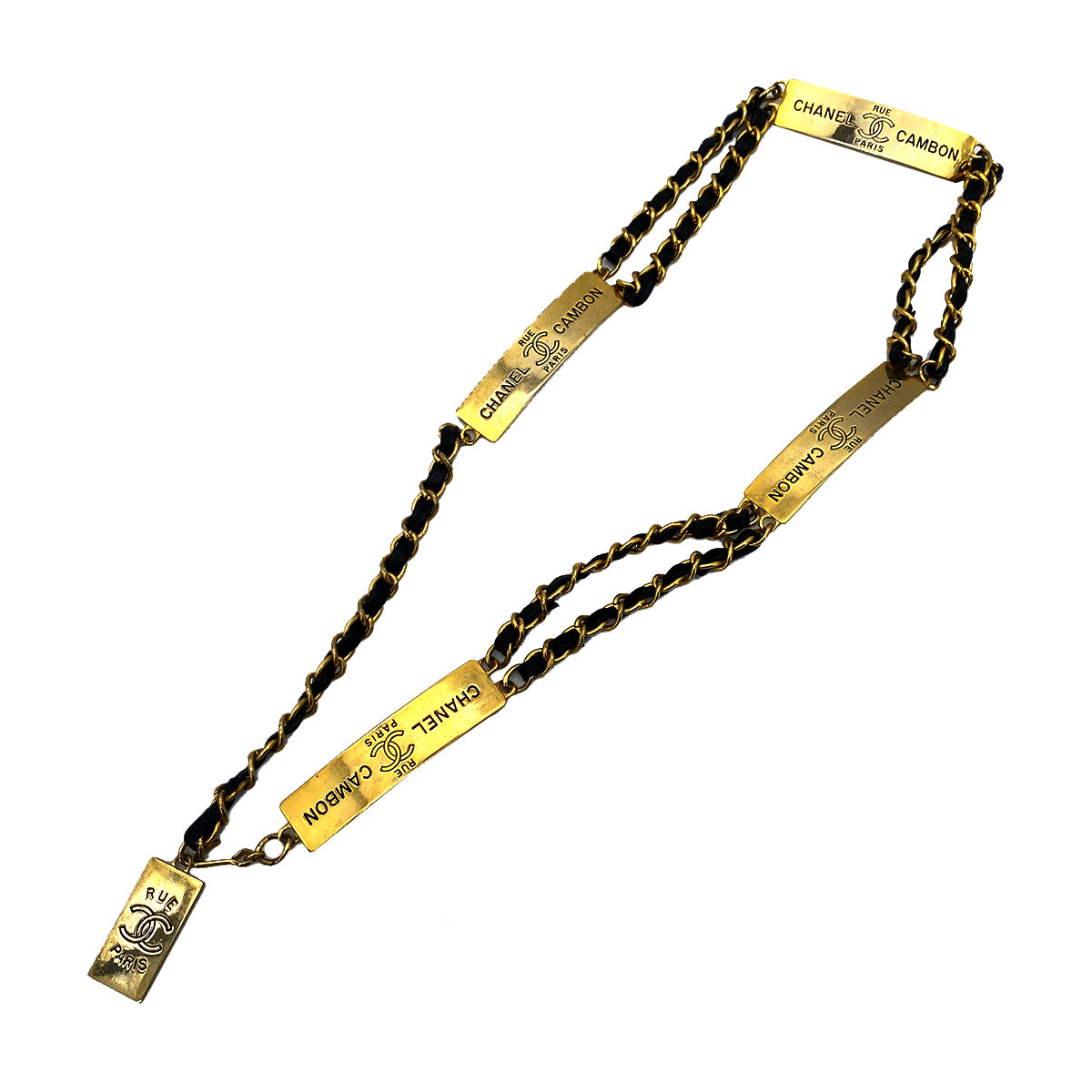 CHANEL VINTAGE CHAIN BELT LEATHER COCOMARK PLATE ACCESSORY 96P 90258179