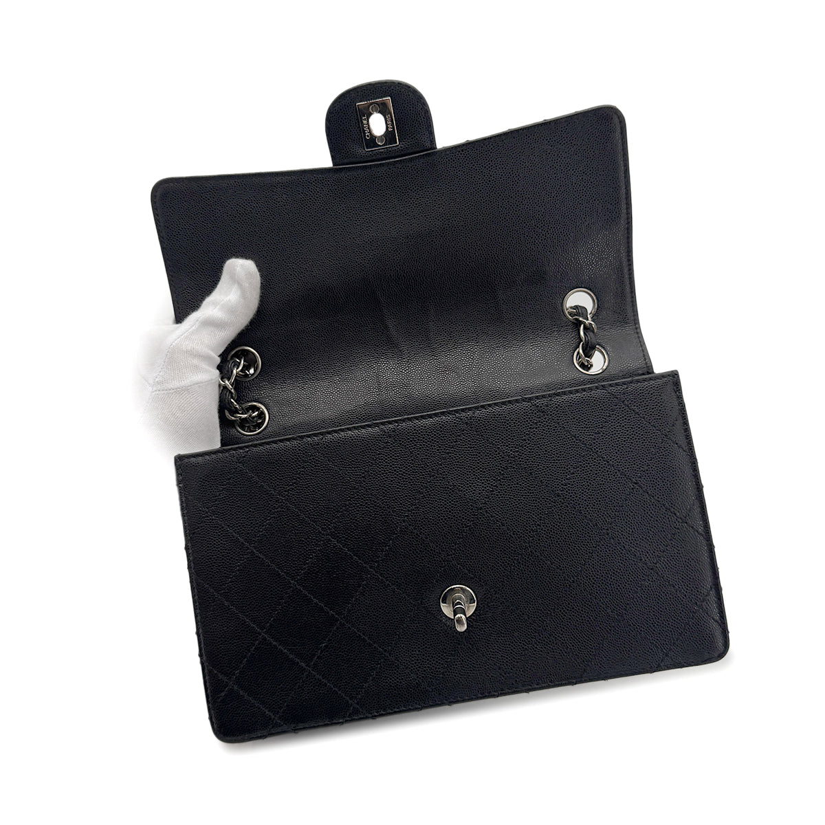CHANEL VINTAGE CHAIN SHOULDER BAG BLACK CAVIAR SKIN 90275020