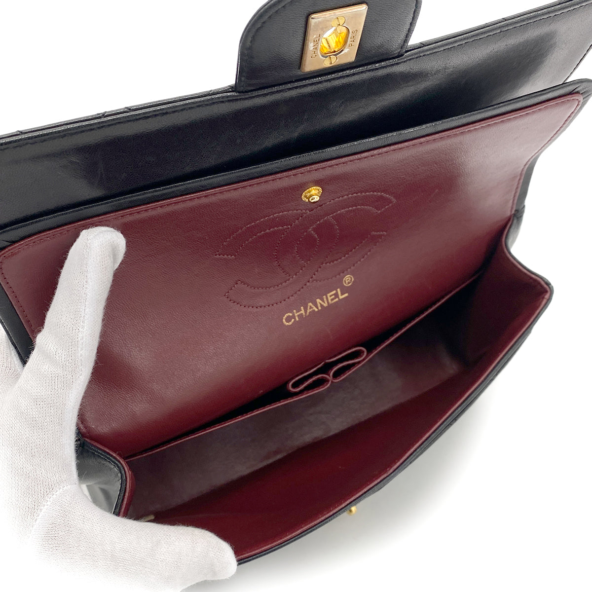 CHANEL VINTAGE CHAIN SHOULDER BAG BLACK LAMB SKIN 90258109