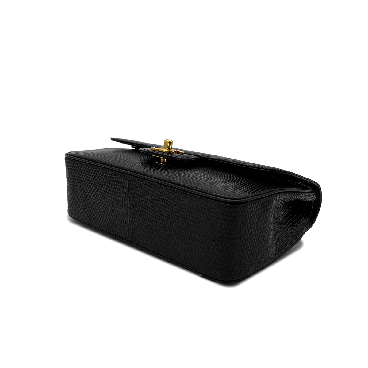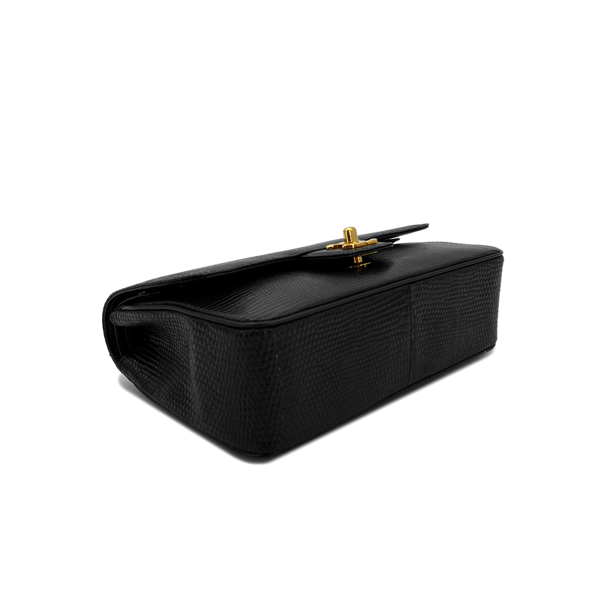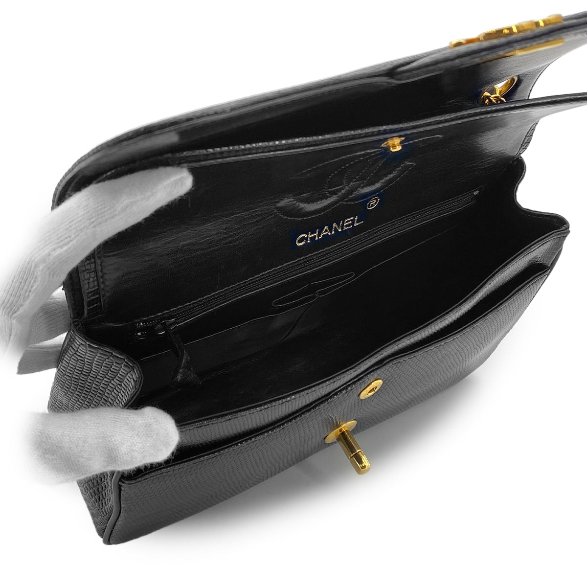 CHANEL VINTAGE CHAIN SHOULDER BAG BLACK LIZARD 90284556