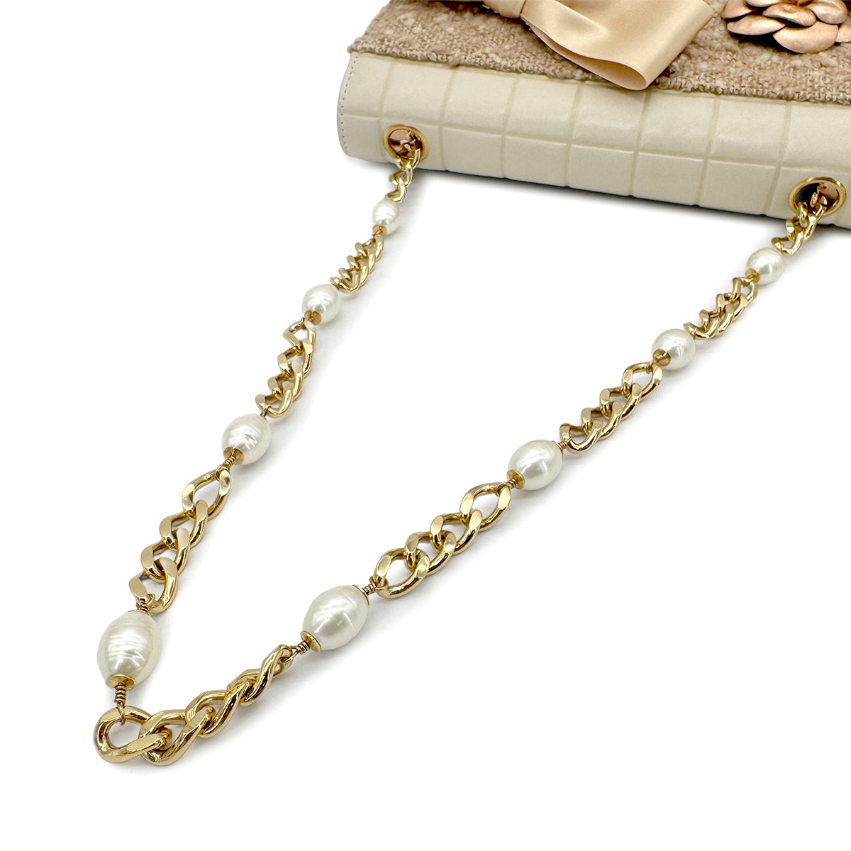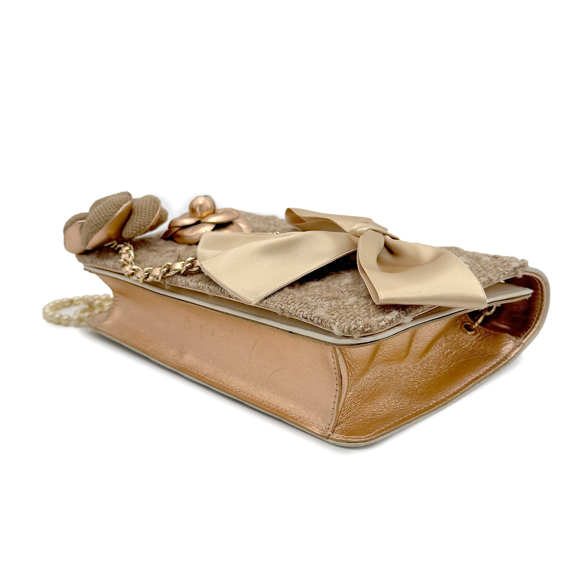 CHANEL VINTAGE CHAIN SHOULDER BAG CAMELLIA RIBBON FAUX PEARL BEIGE 90271728