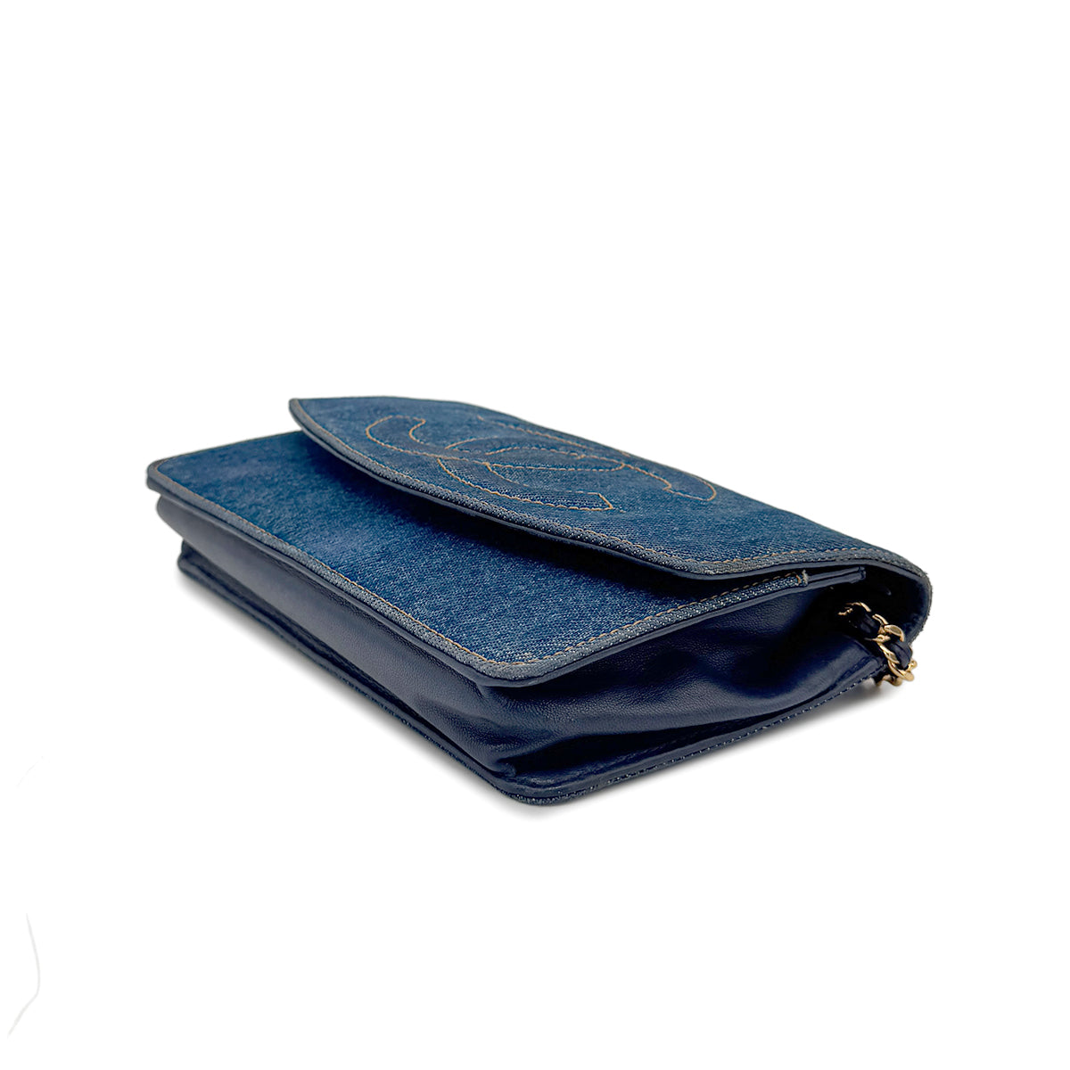 CHANEL VINTAGE COCOMARK CHAIN SHOULDER WALLET BLUE DENIM 90275922