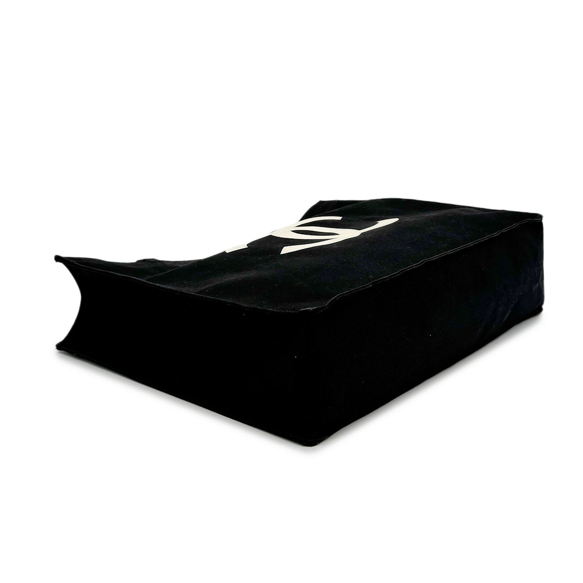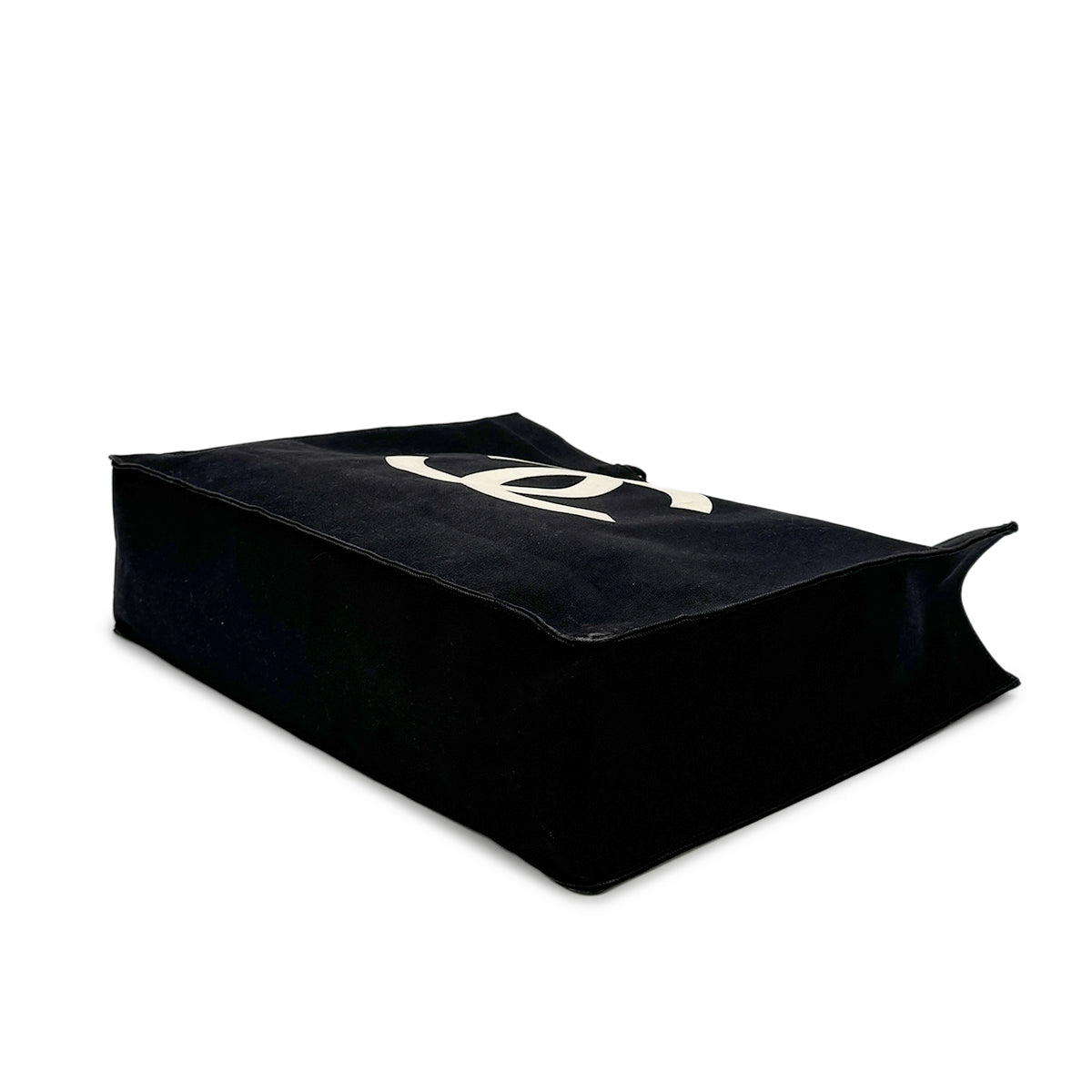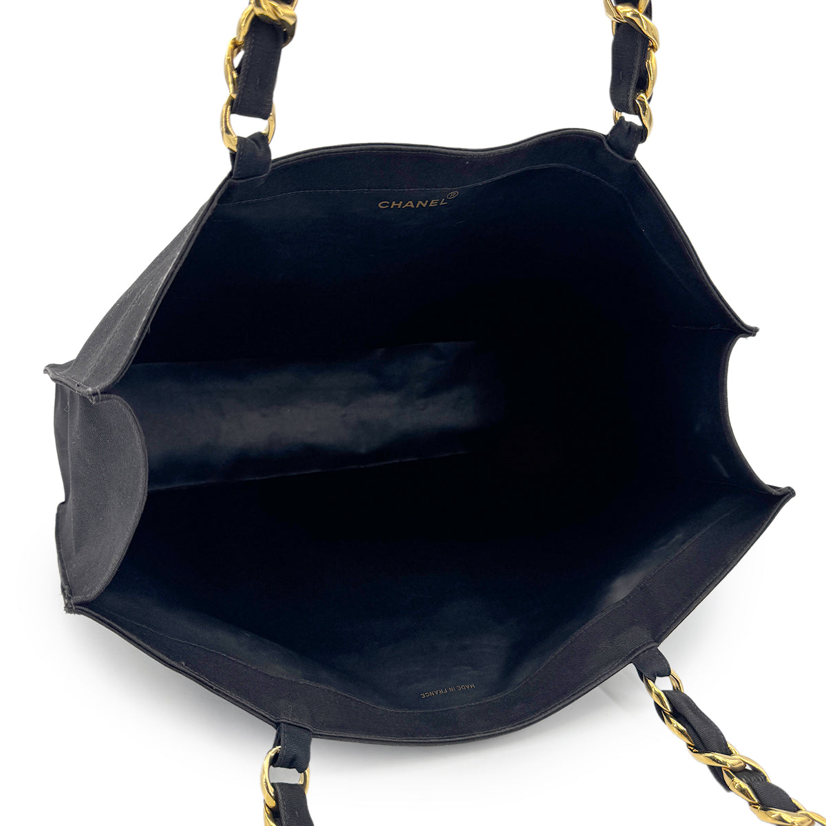 CHANEL VINTAGE CHAIN TOTE BAG BLACK WHITE CANVAS 90277248