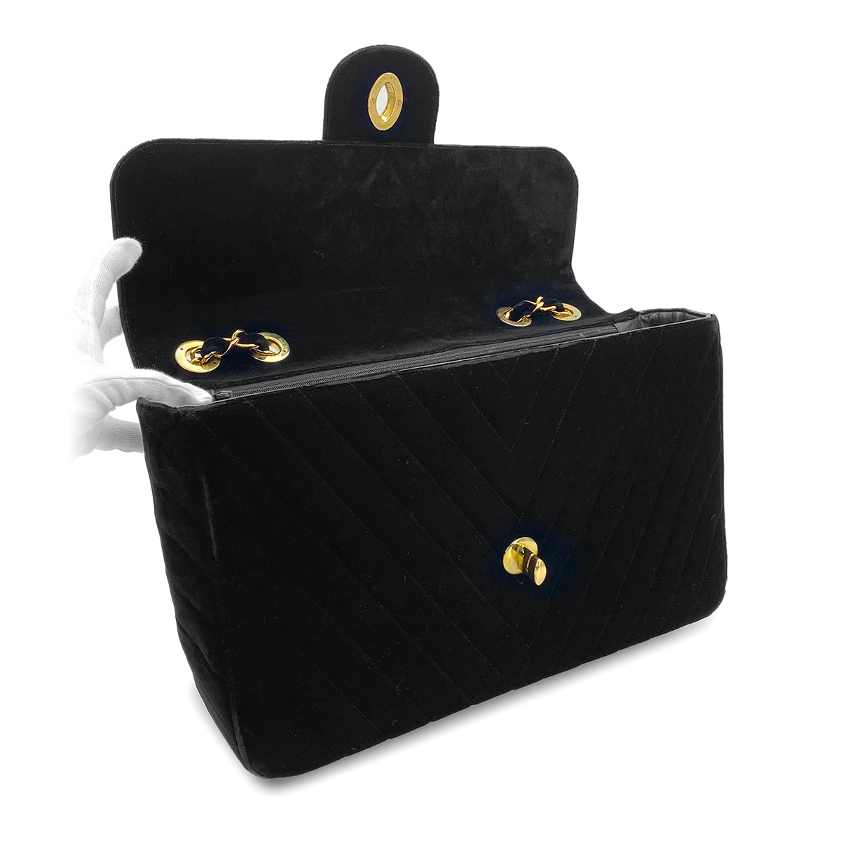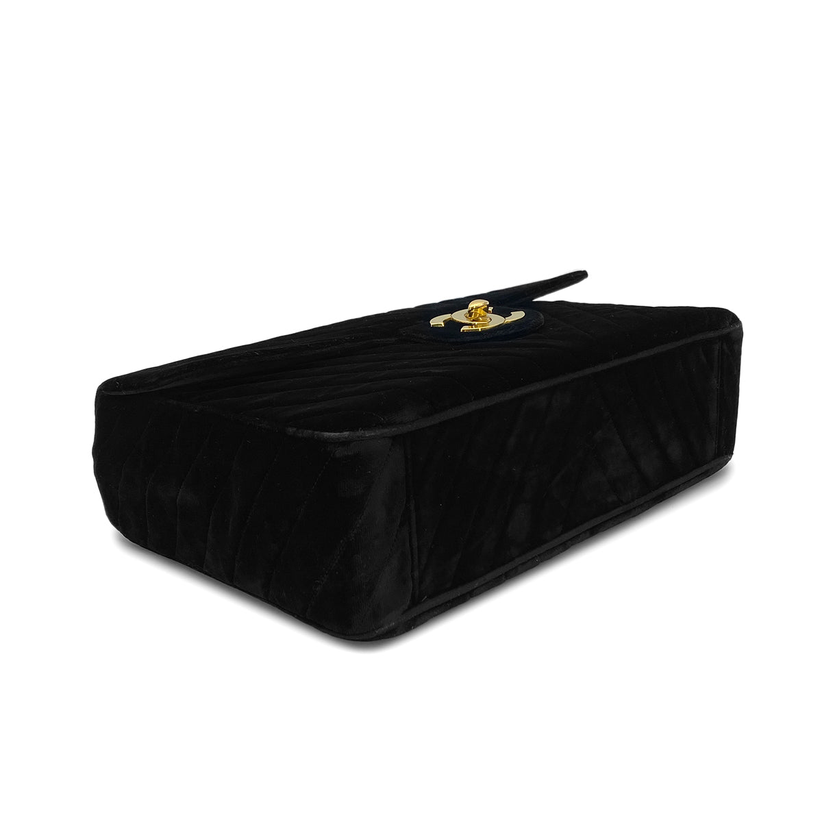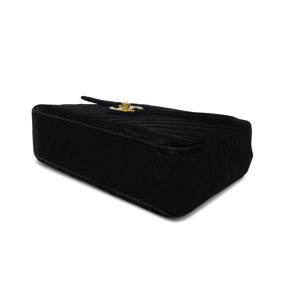 CHANEL VINTAGE CHEVRON CHAIN SHOULDER BAG BLACK VELOR 90282750
