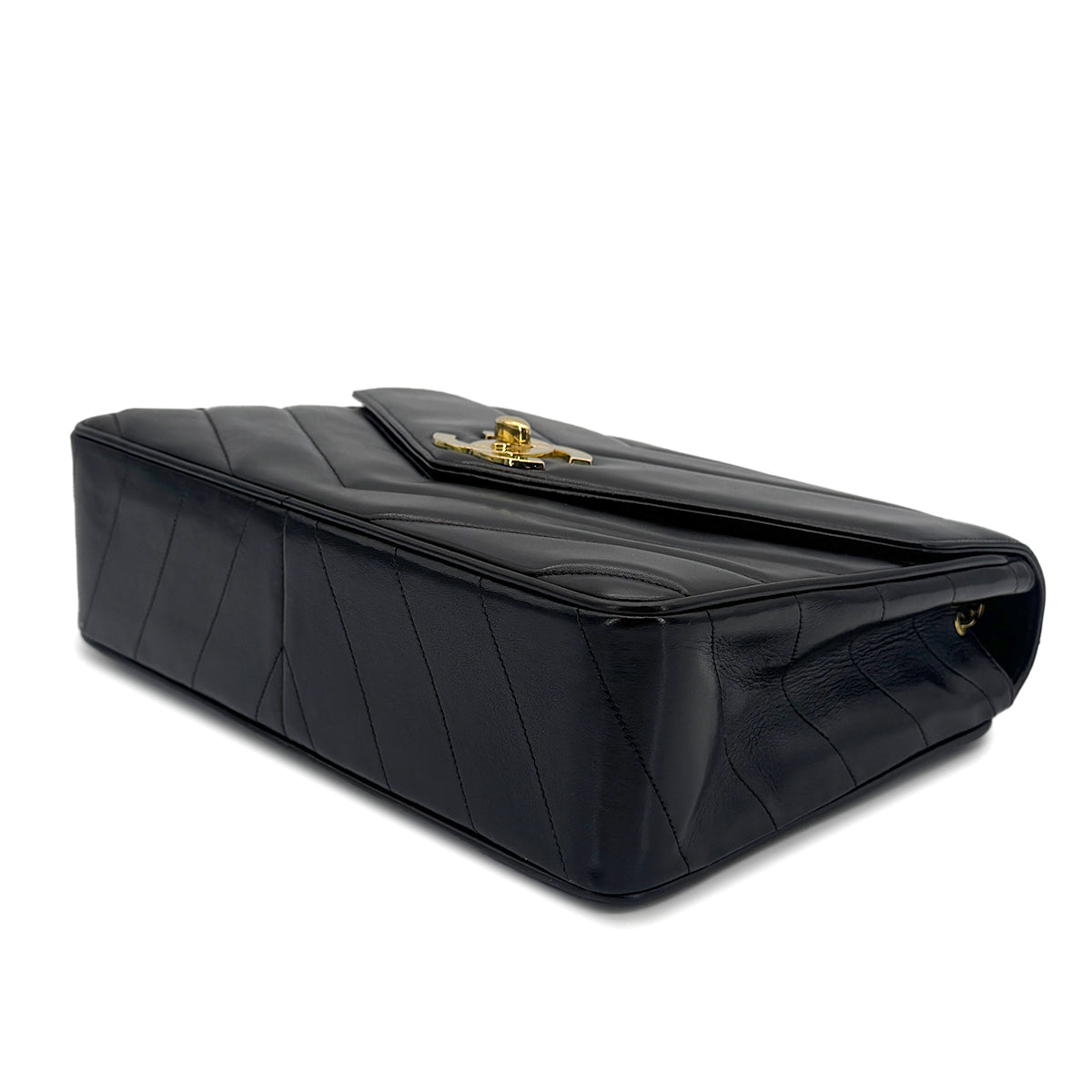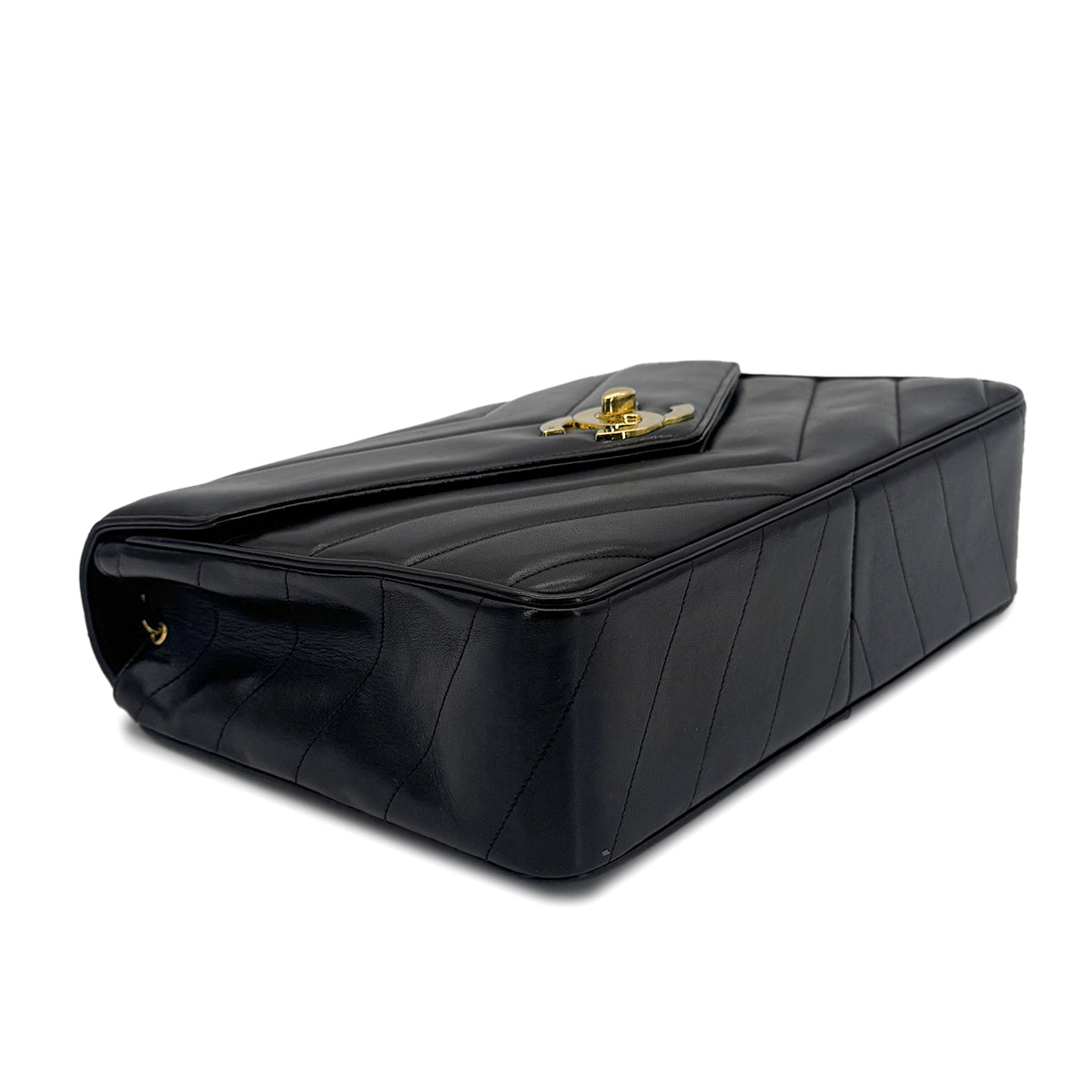 CHANEL VINTAGE CHEVRON V STITCH CHAIN SHOULDER BAG BLACK LAMB SKIN 90272981