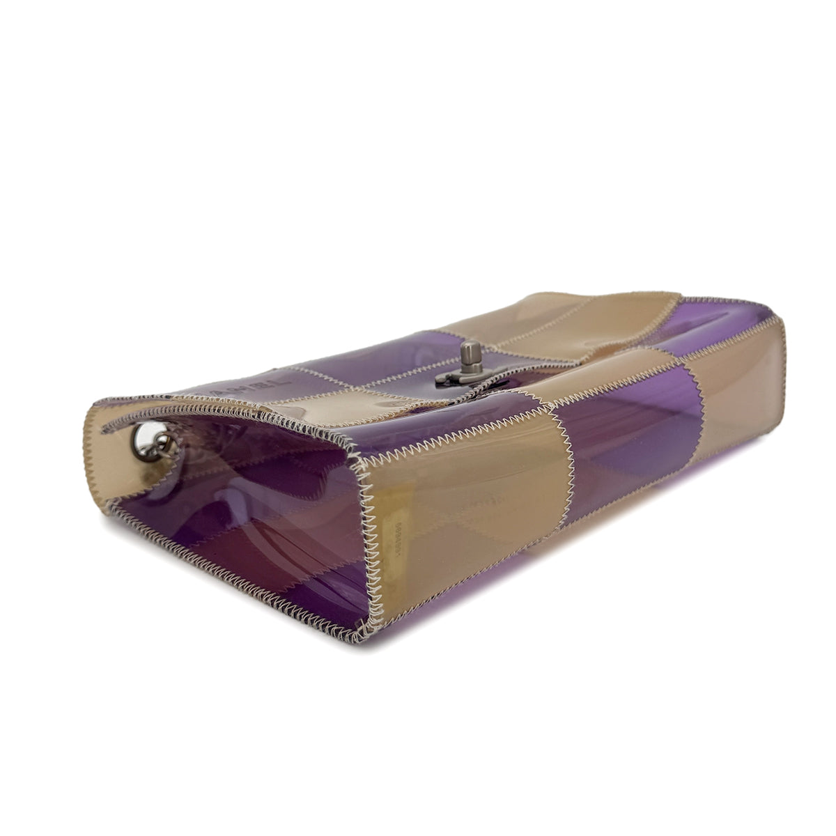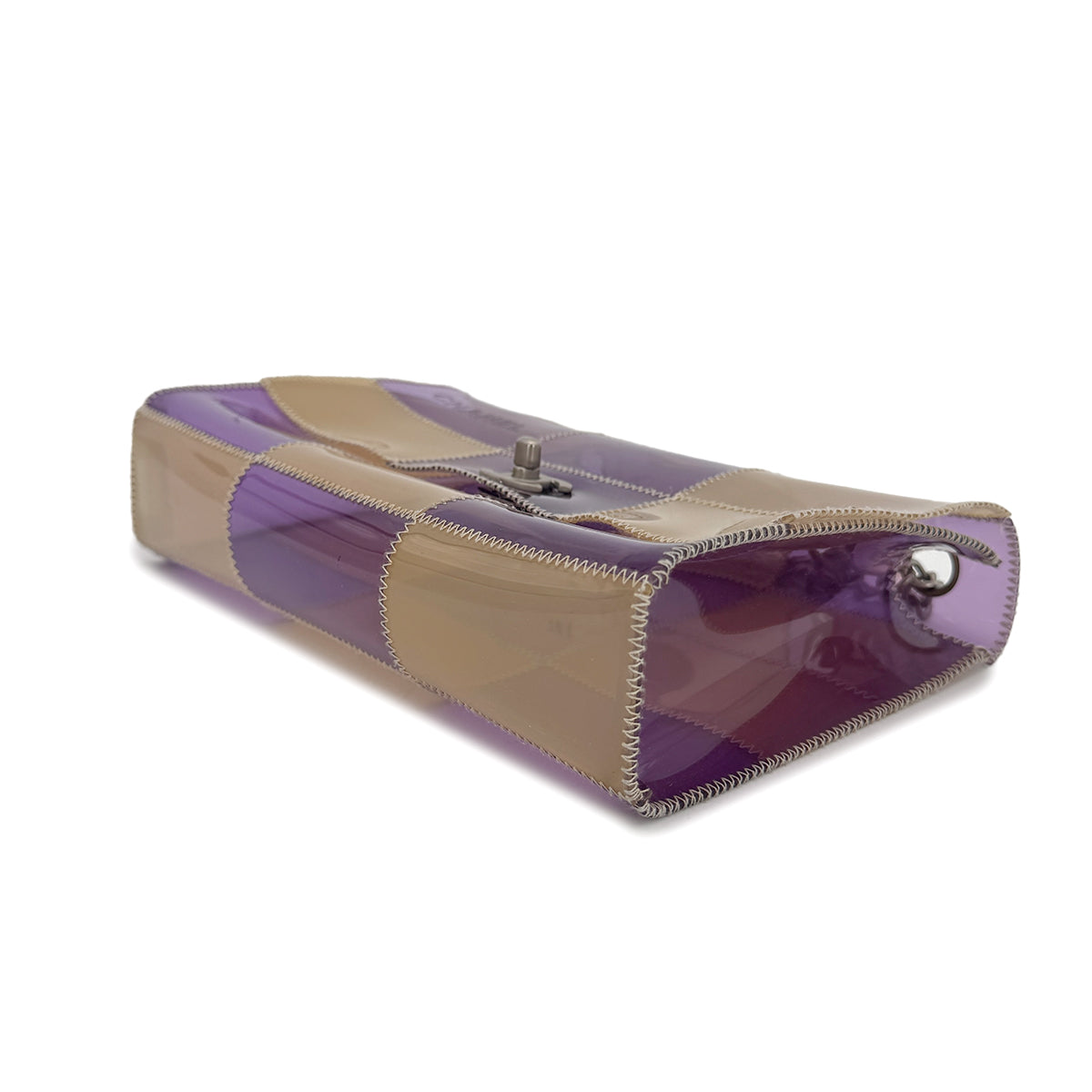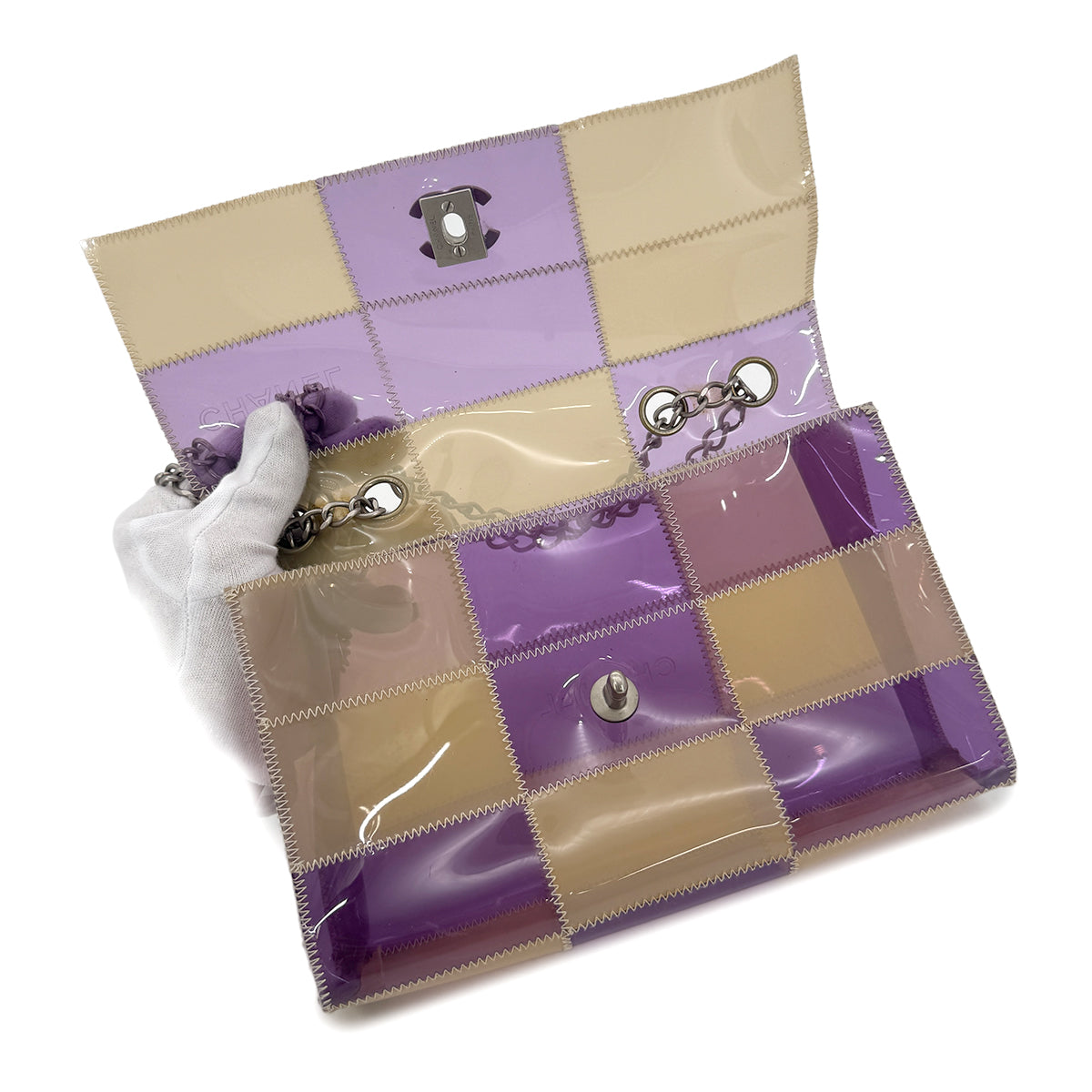 CHANEL VINTAGE CHOCOLATE BAR CHAIN SHOULDER BAG PURPLE BEIGE VINYL 90270388