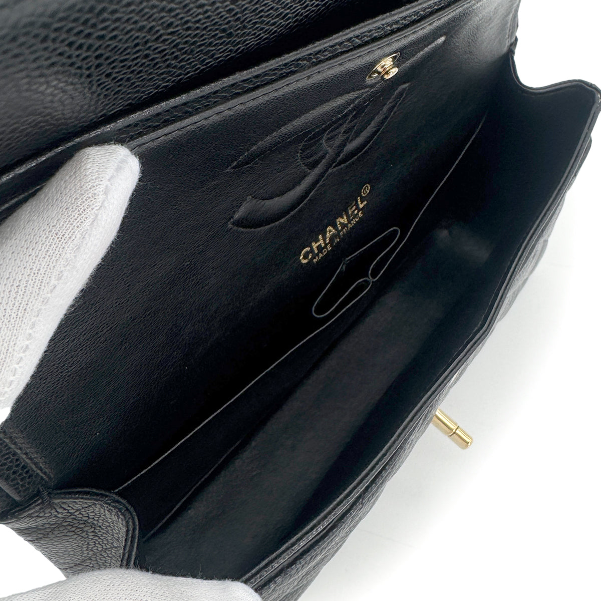 CHANEL VINTAGE CLASSIC FLAP MEDIUM CHAIN SHOULDER BAG BLACK CAVIAR SKIN 90270851