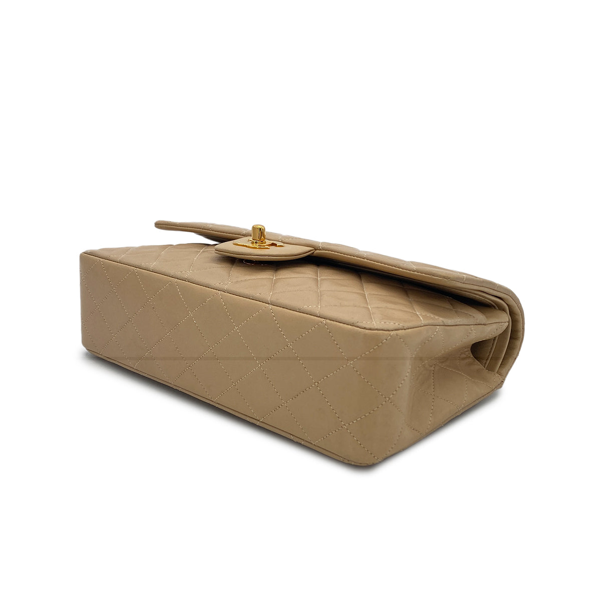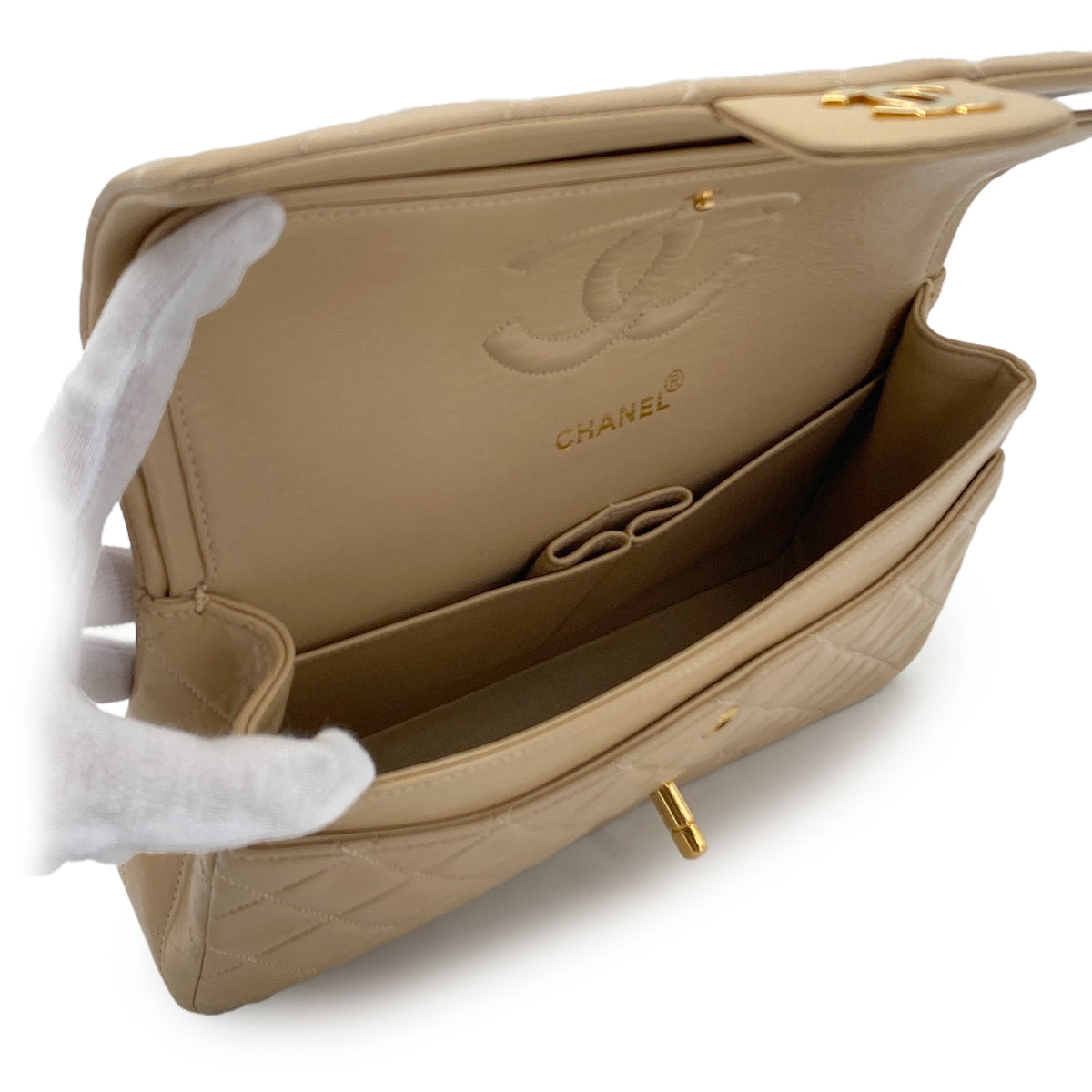 CHANEL VINTAGE CLASSIC FLAP MEDIUM CHAIN SHOULDER BAG BEIGE LAMB SKIN 90282740