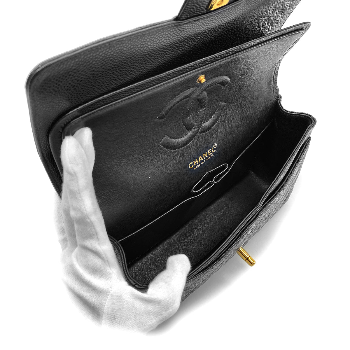 CHANEL VINTAGE CLASSIC FLAP MEDIUM CHAIN SHOULDER BAG BLACK CAVIAR SKIN 90268199