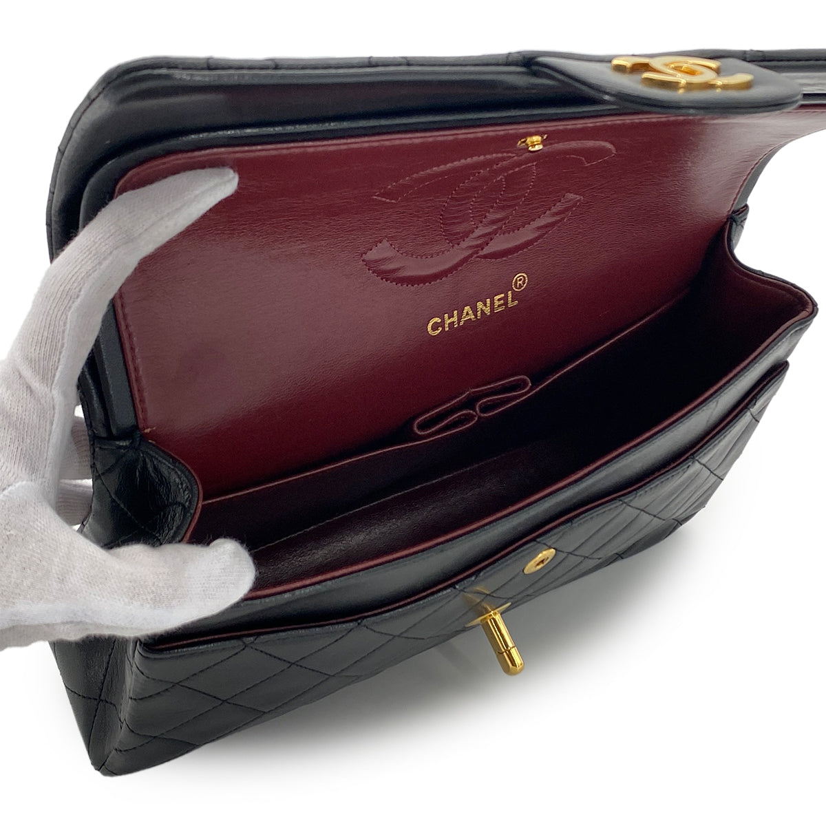 CHANEL VINTAGE CLASSIC FLAP MEDIUM CHAIN SHOULDER BAG BLACK LAMB SKIN 90285934