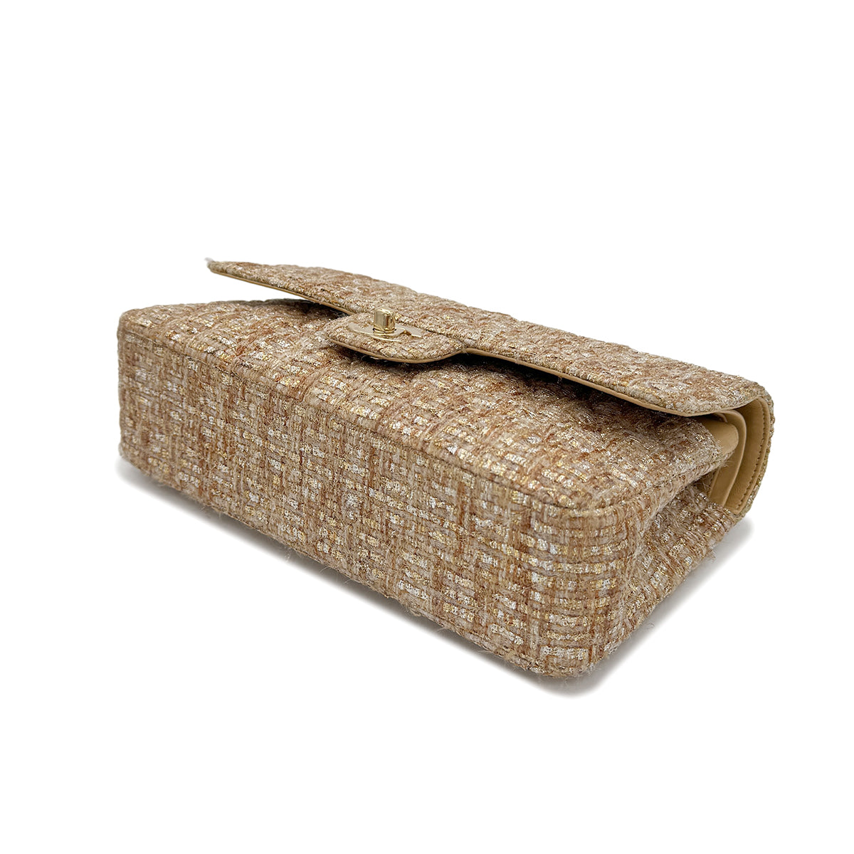CHANEL VINTAGE CLASSIC FLAP MEDIUM CHAIN SHOULDER BAG GOLD TWEED 90302900