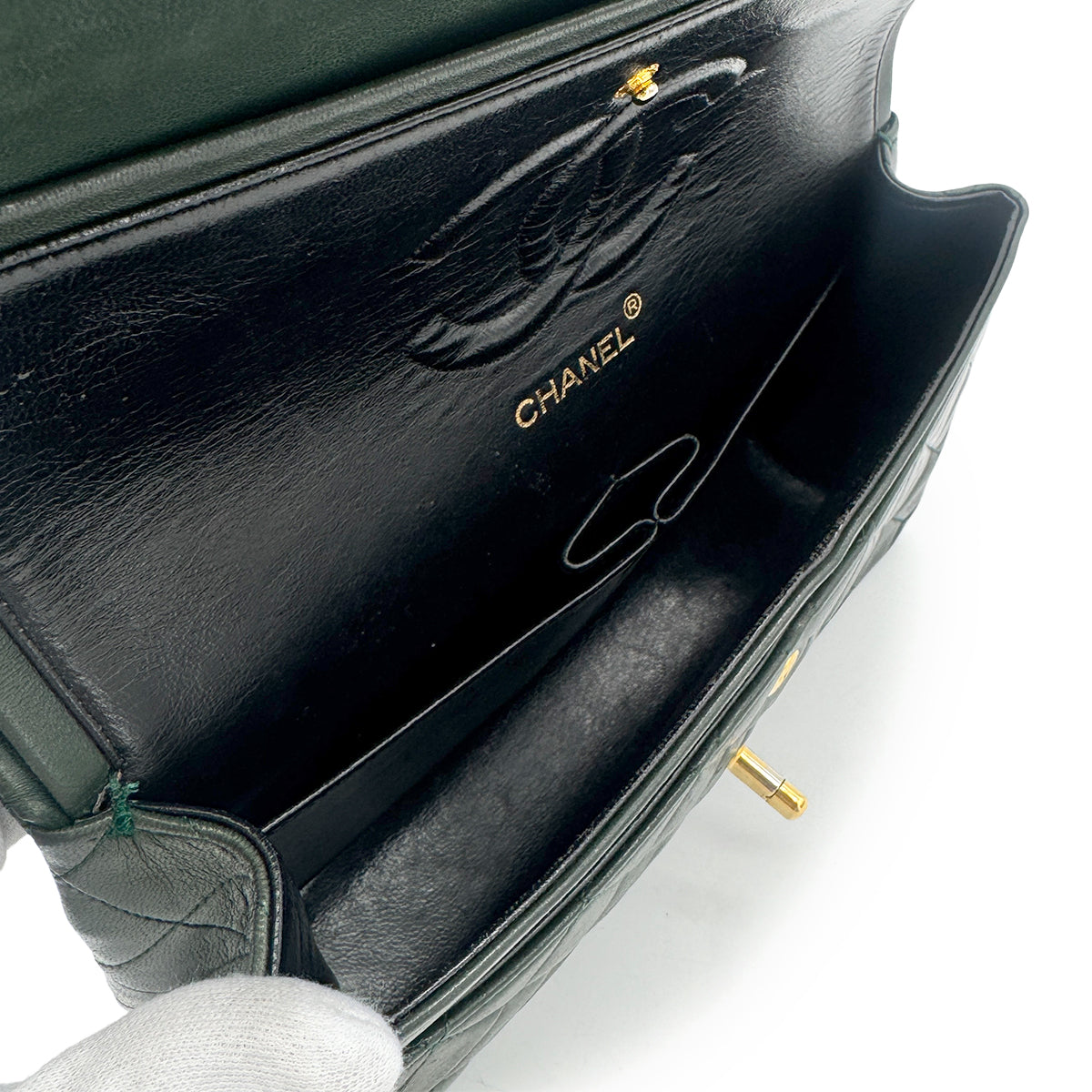 CHANEL VINTAGE CLASSIC FLAP MEDIUM CHAIN SHOULDER BAG GREEN LAMB SKIN 90277553