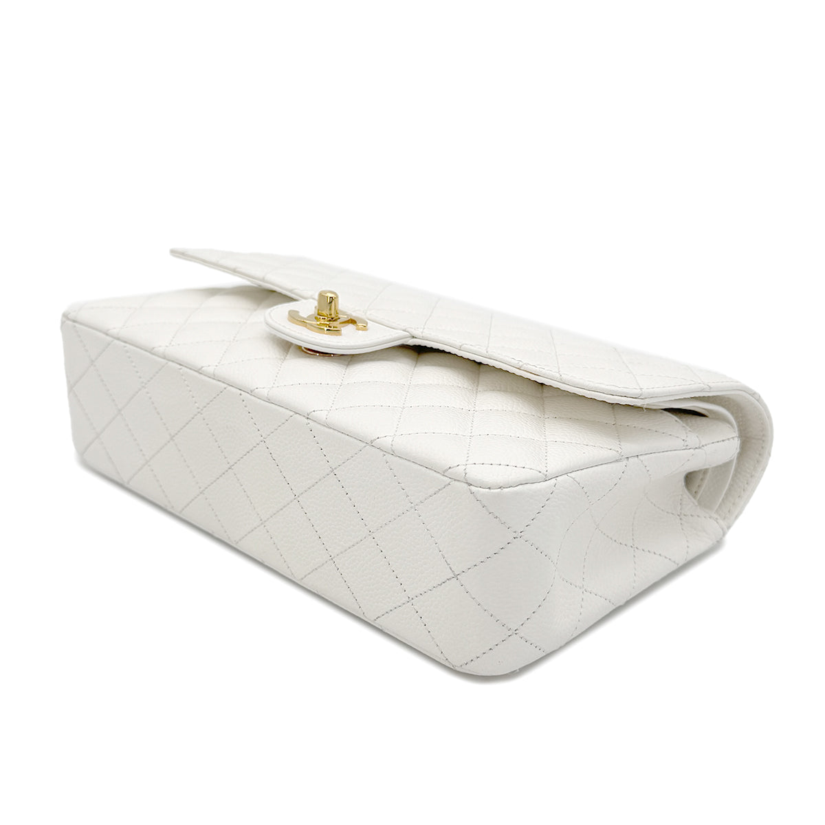 CHANEL VINTAGE CLASSIC FLAP MEDIUM CHAIN SHOULDER BAG WHITE CAVIAR SKIN 90267769