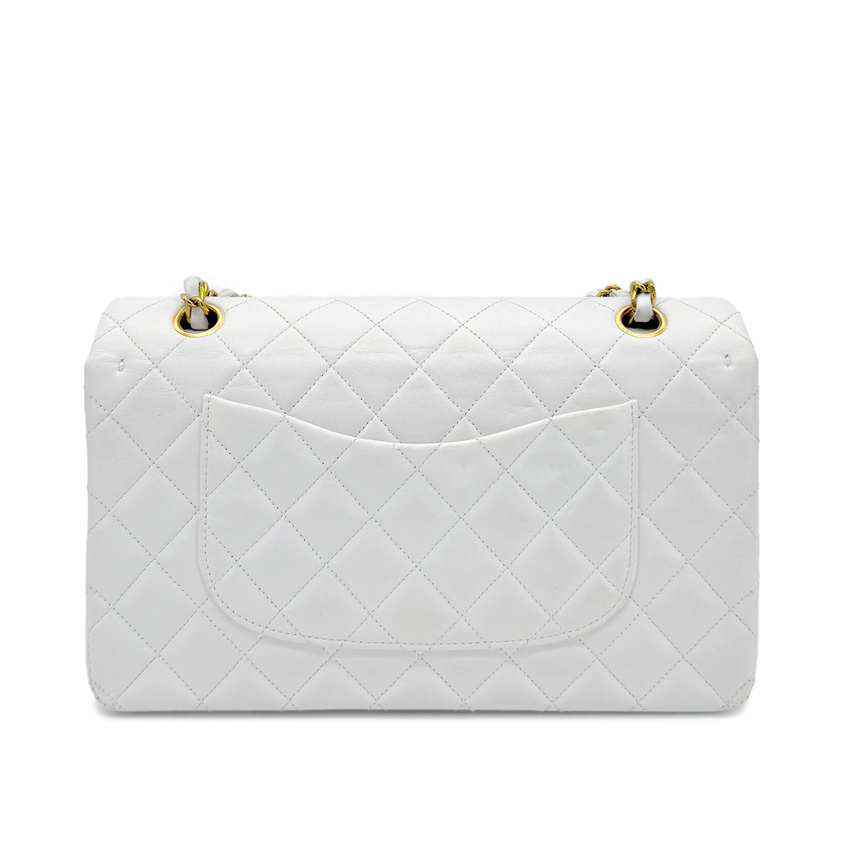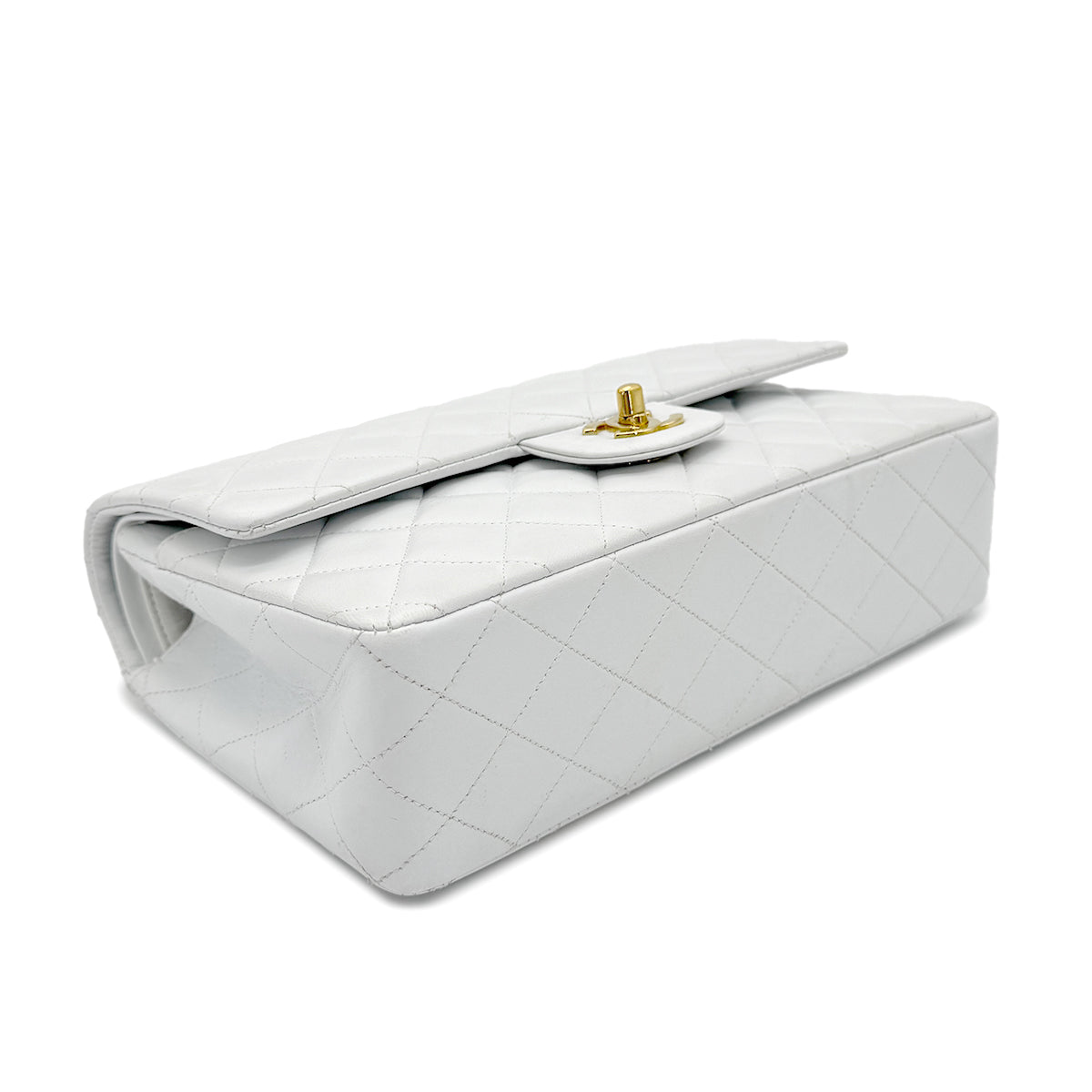 CHANEL VINTAGE CLASSIC FLAP MEDIUM CHAIN SHOULDER BAG WHITE LAMB SKIN 90269058