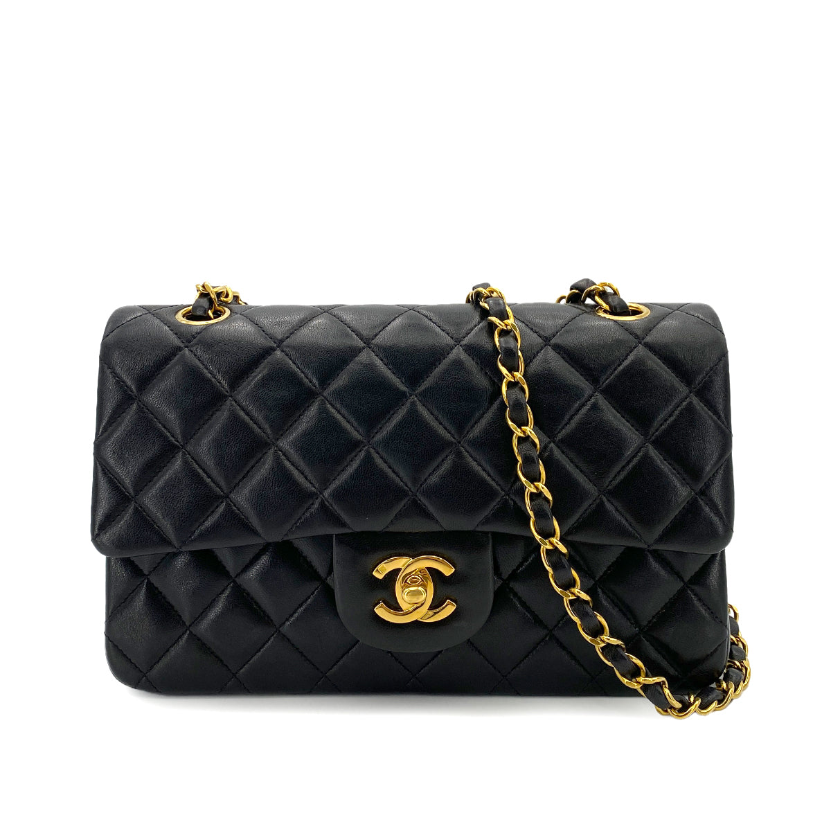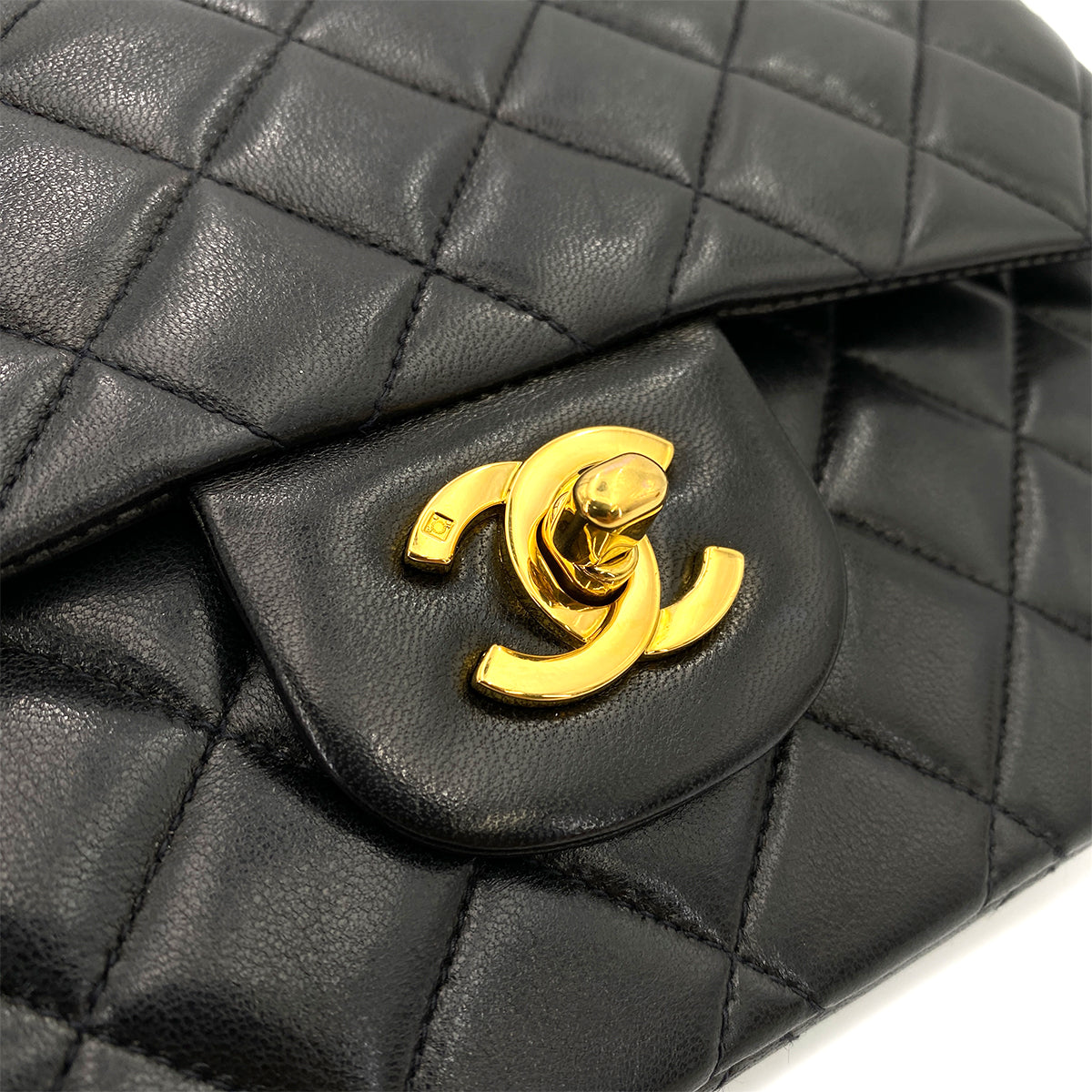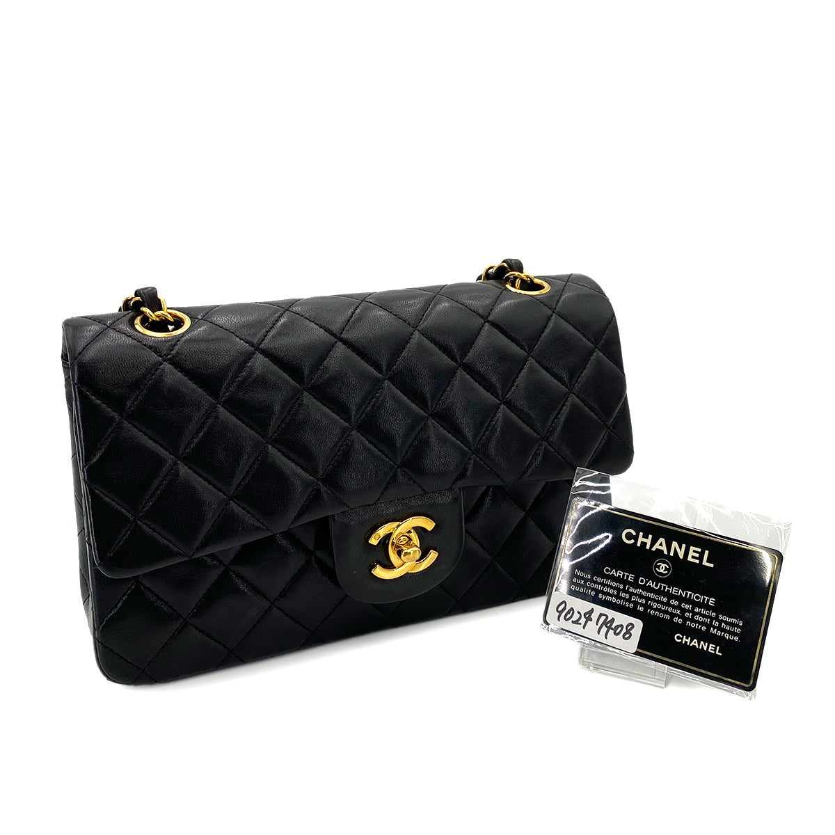 CHANEL VINTAGE CLASSIC FLAP SMALL CHAIN SHOULDER BAG BLACK LAMB SKIN 90247408