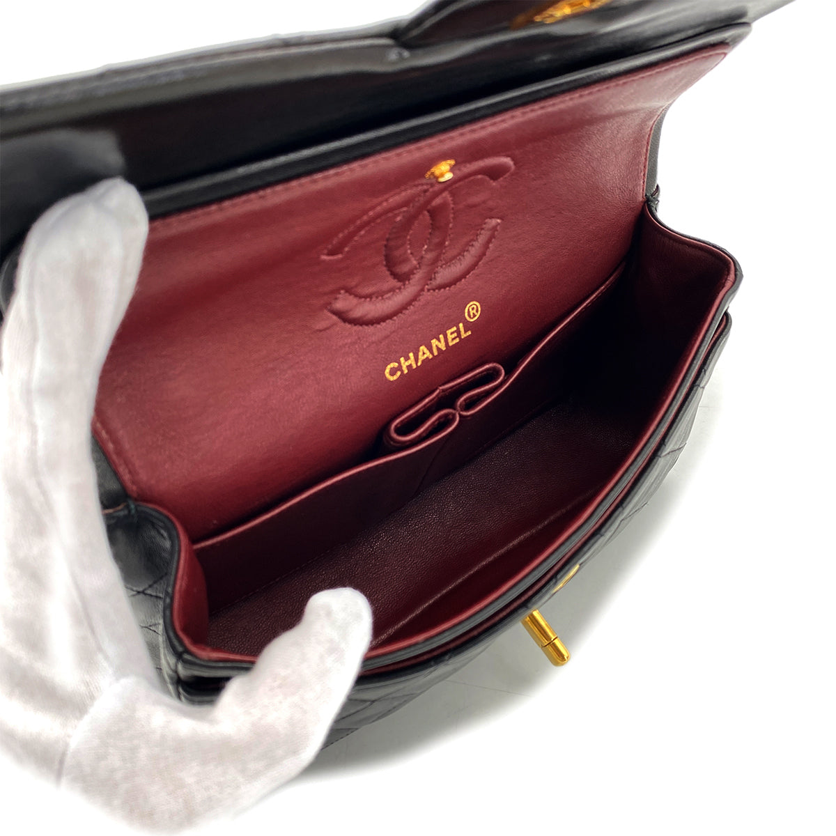 CHANEL VINTAGE CLASSIC FLAP SMALL CHAIN SHOULDER BAG BLACK LAMB SKIN 90268828