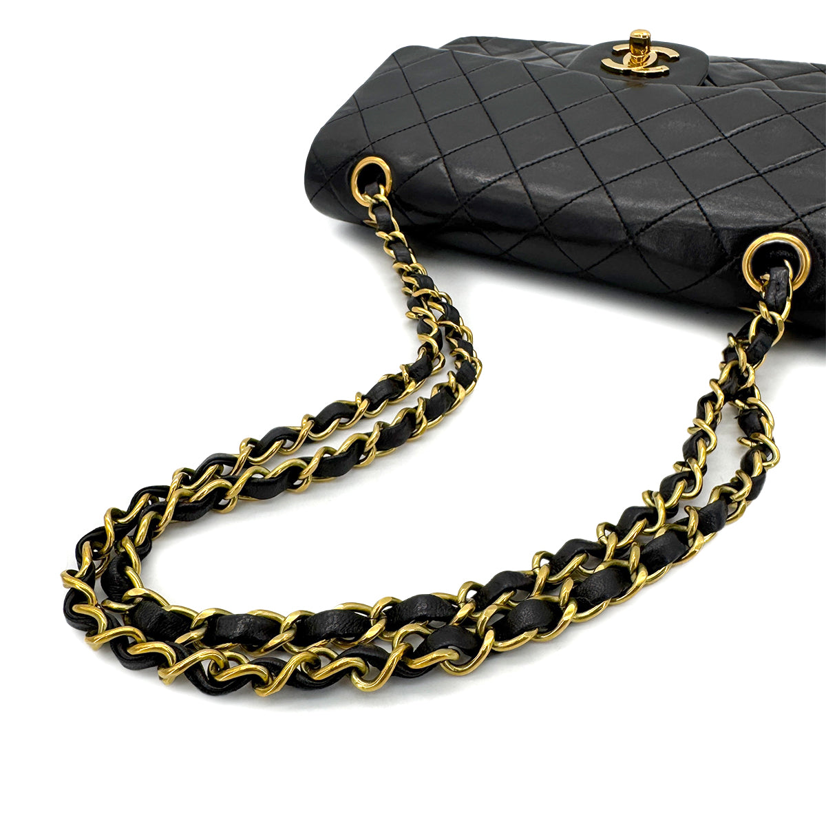 CHANEL VINTAGE CLASSIC FLAP SMALL CHAIN SHOULDER BAG BLACK LAMB SKIN 90284410