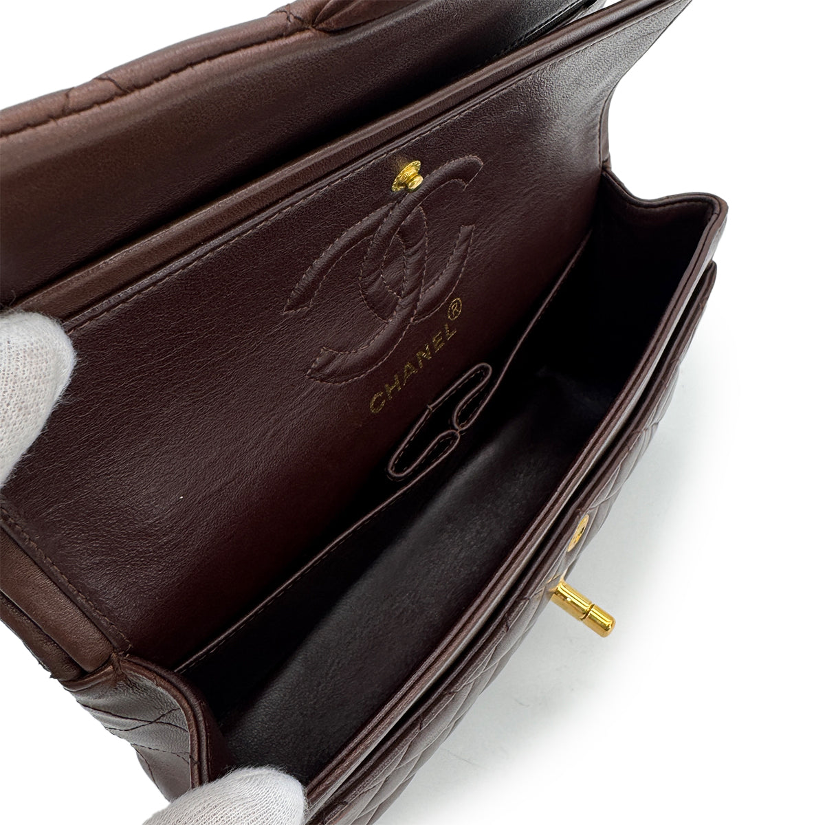 CHANEL VINTAGE CLASSIC FLAP SMALL CHAIN SHOULDER BAG BROWN LAMB SKIN 90296048