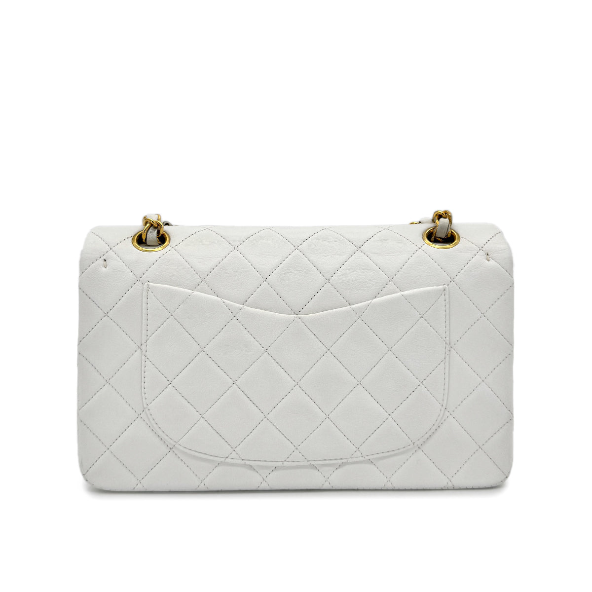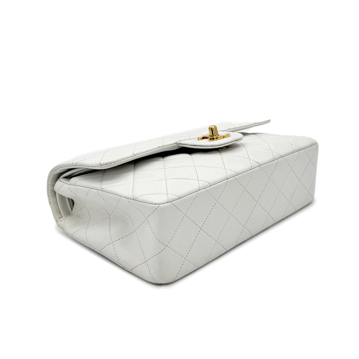 CHANEL VINTAGE CLASSIC FLAP SMALL CHAIN SHOULDER BAG WHITE LAMB SKIN 90277236