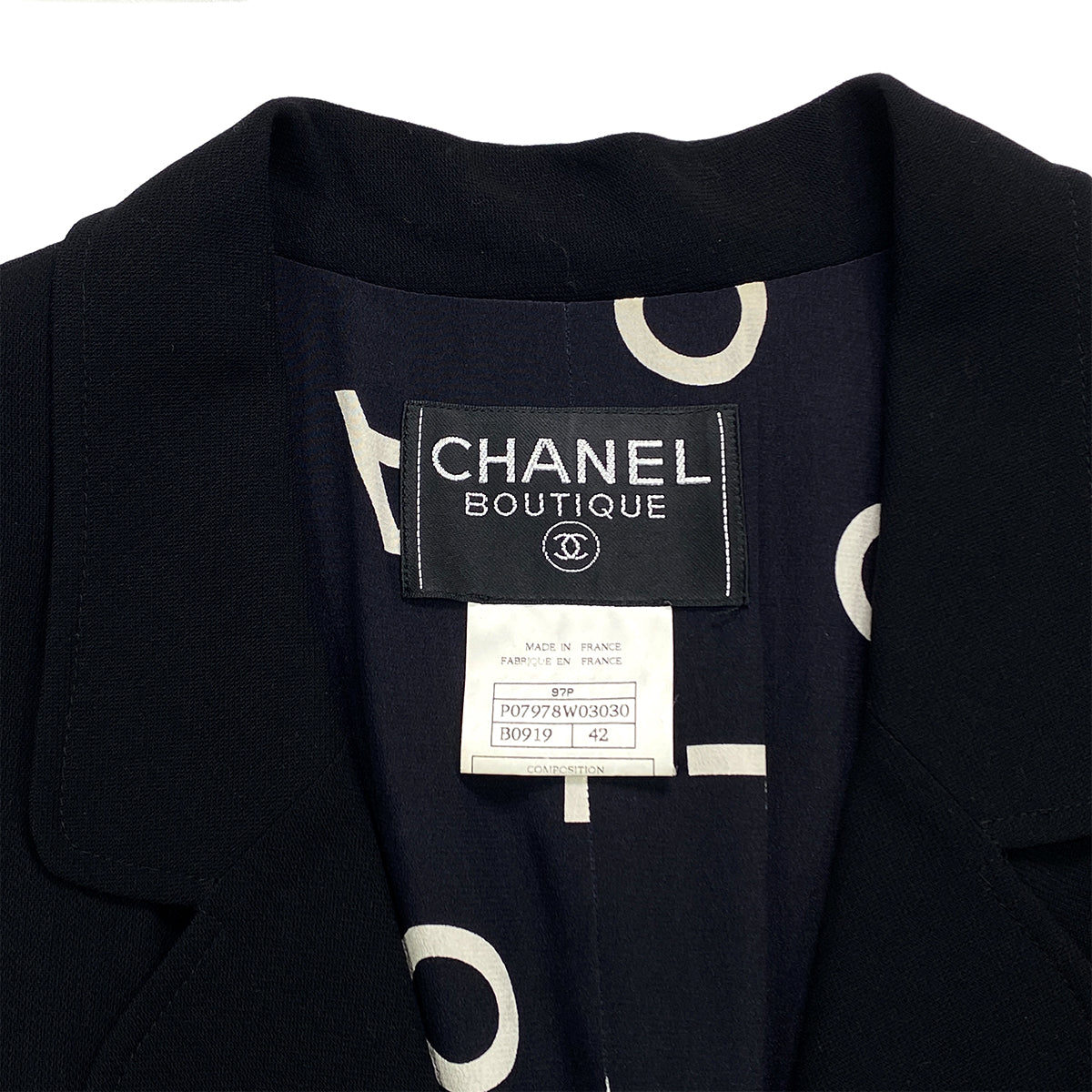CHANEL VINTAGE COCO BUTTON DRESS BLACK WOOL 42 97P RTW 90283154