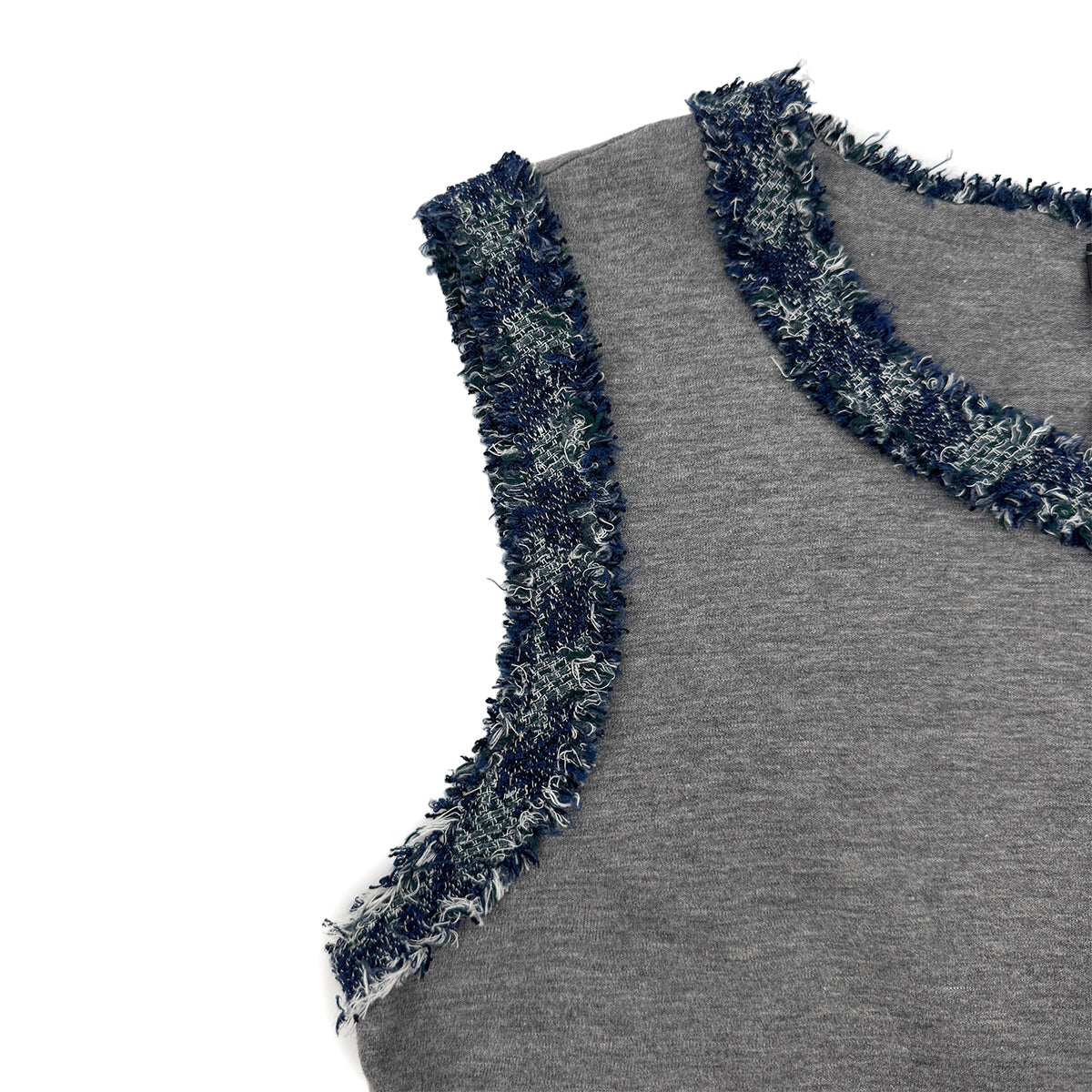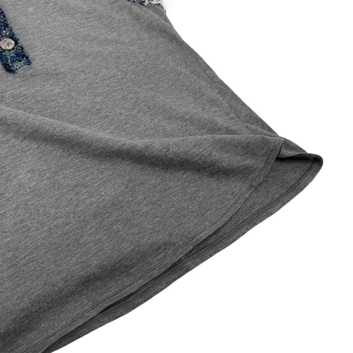 CHANEL VINTAGE COCO BUTTON TOPS GRAY COTTON 38 P43 RTW 90284021