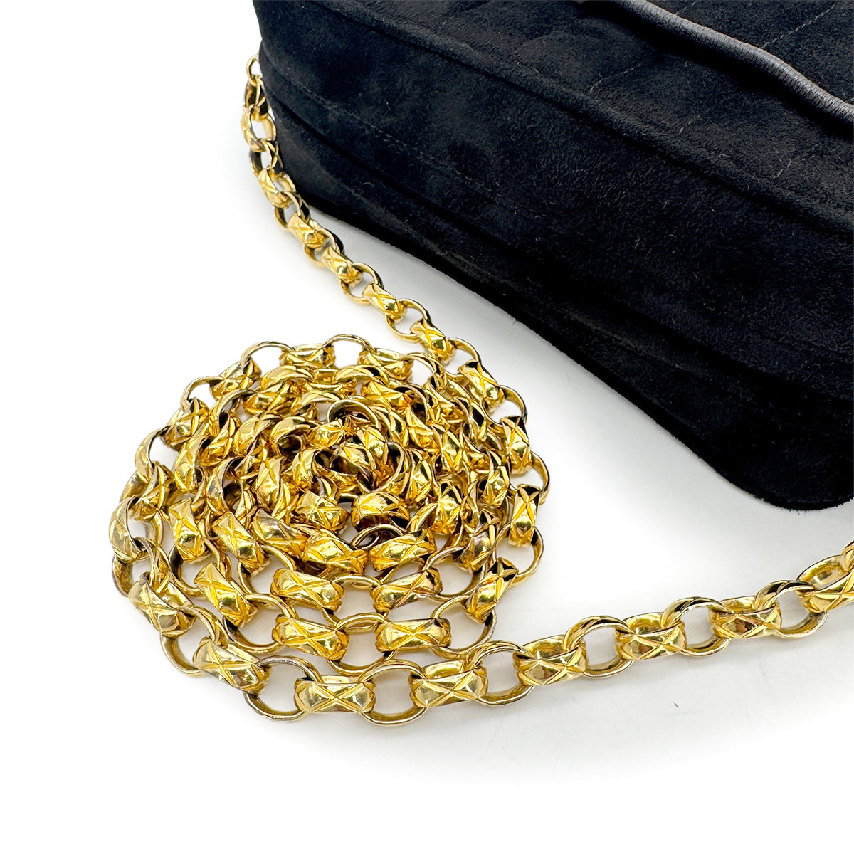 CHANEL VINTAGE COCOMARK FRINGE BIJOU CHAIN SHOLDER BAG BLACK SUEDE 90275034