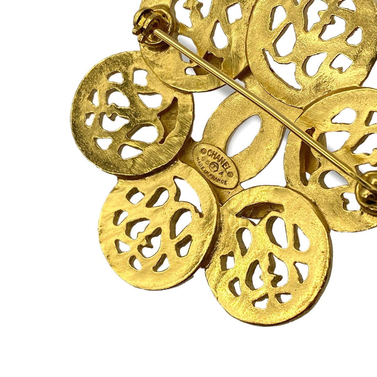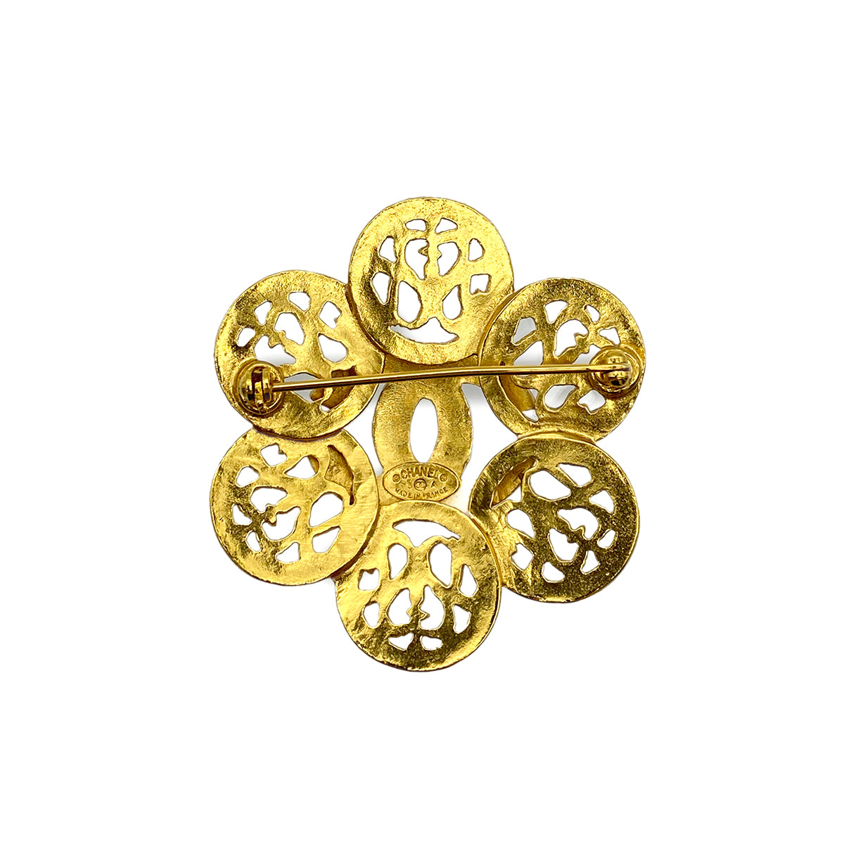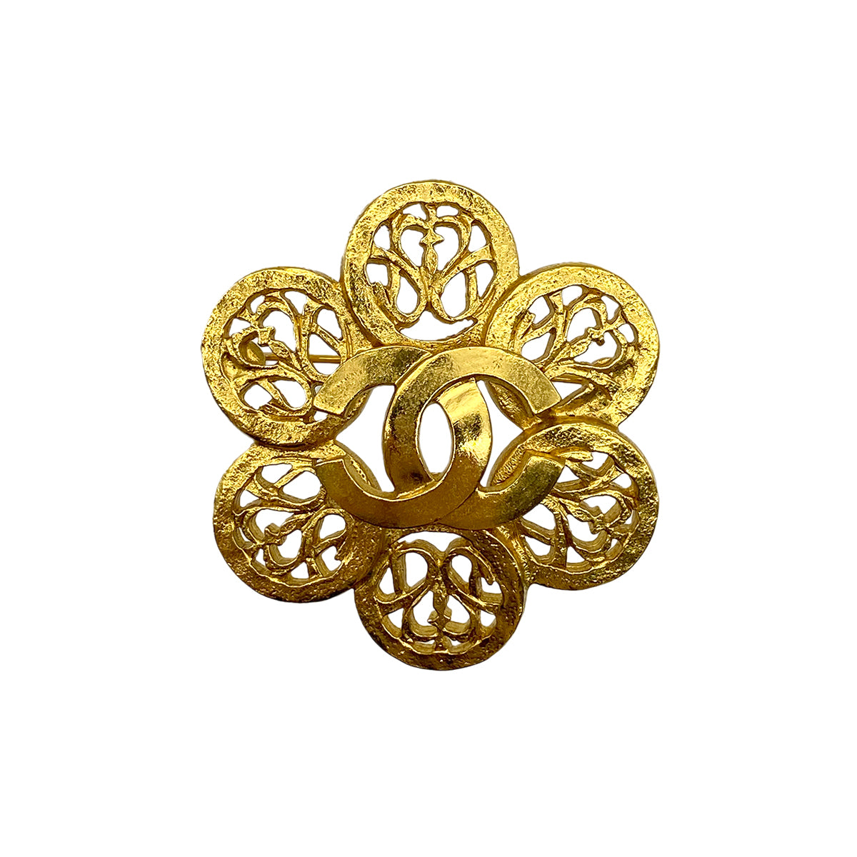 CHANEL VINTAGE COCOMARK BROOCH FLOWER MOTIF GOLD ACCESSORY 95A 90275043