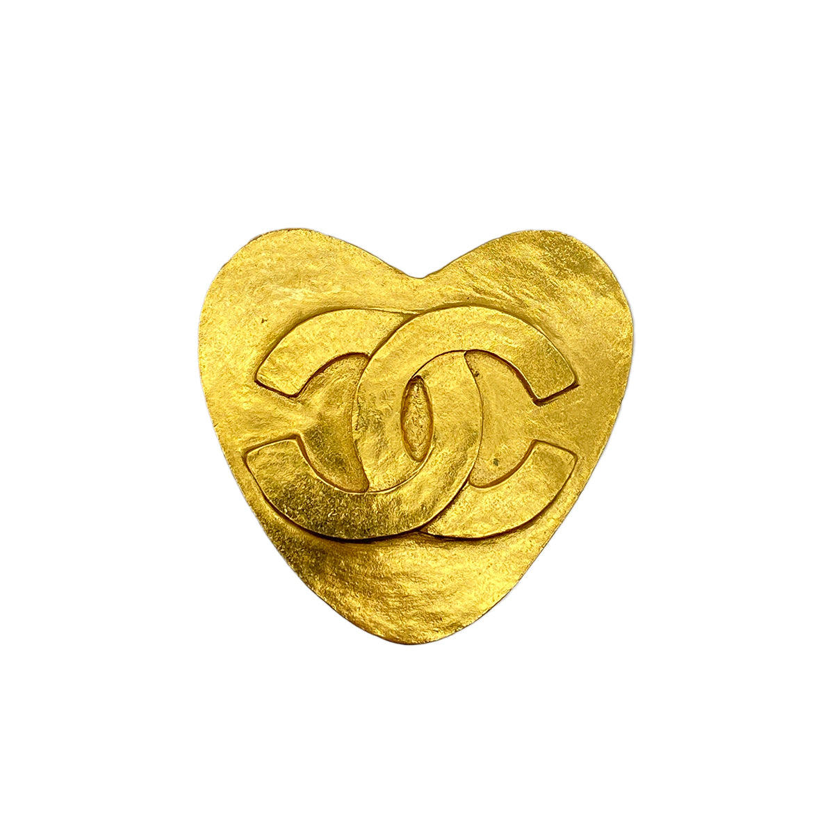 CHANEL VINTAGE COCOMARK BROOCH HEART GOLD ACCESSORY 95P 90274878