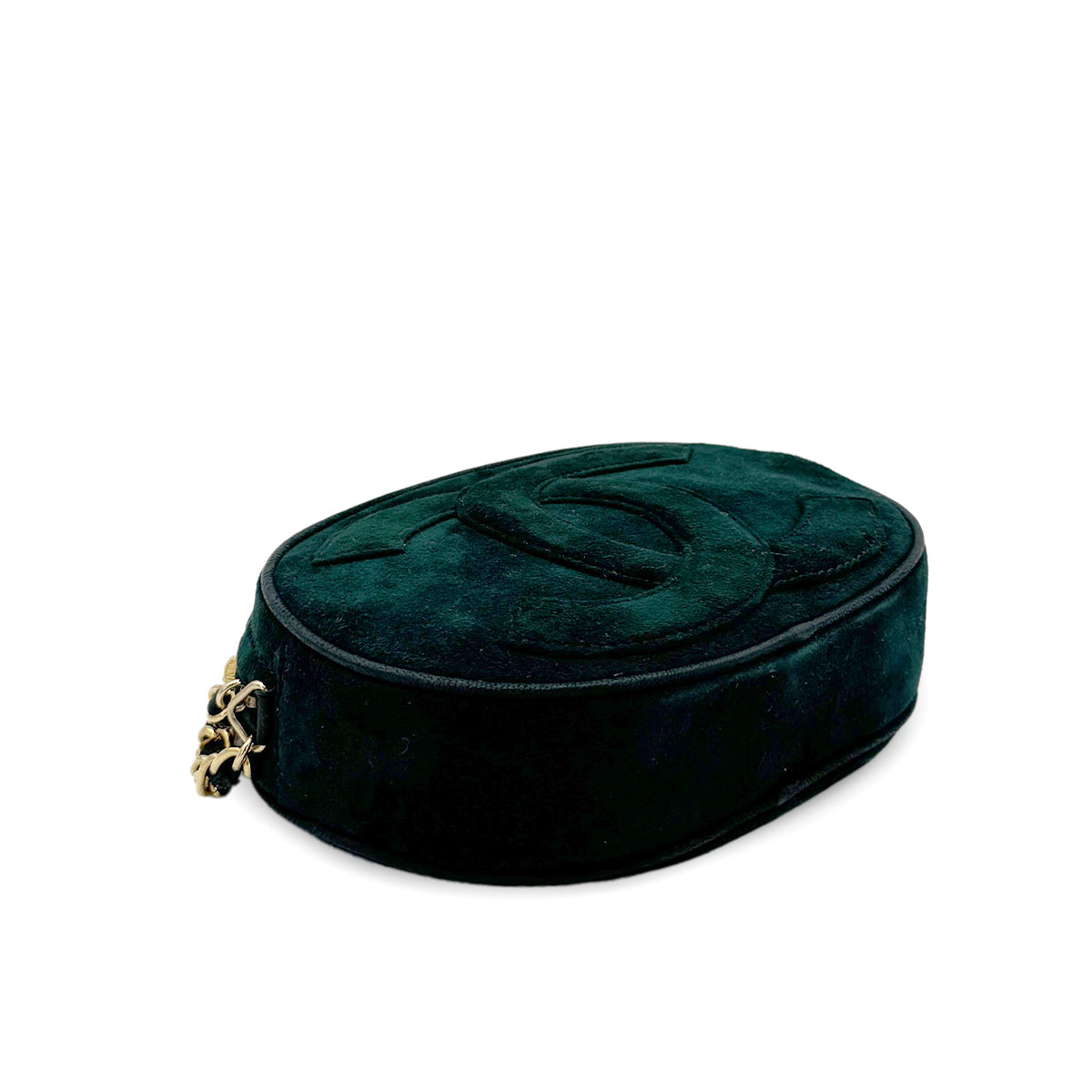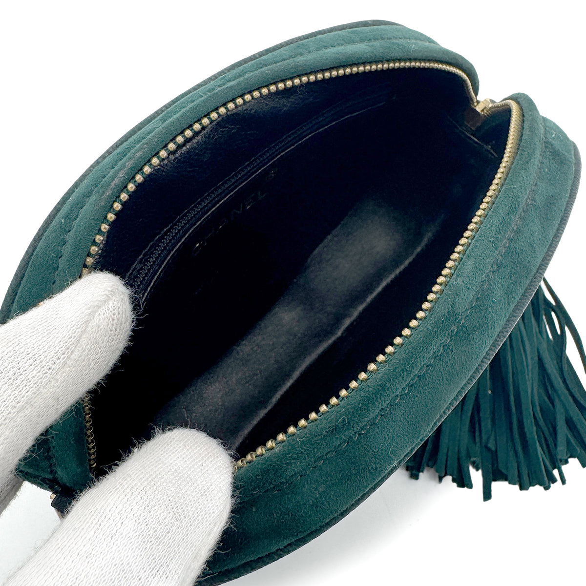 CHANEL VINTAGE COCOMARK FRINGE CHAIN SHOULDER BAG GREEN SUEDE 90281233